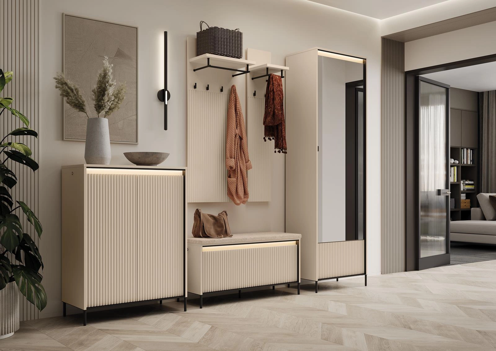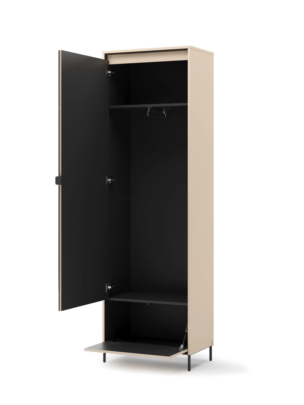 - Im Kleiderschrank befindet sich ein Kleiderbügelhalter.