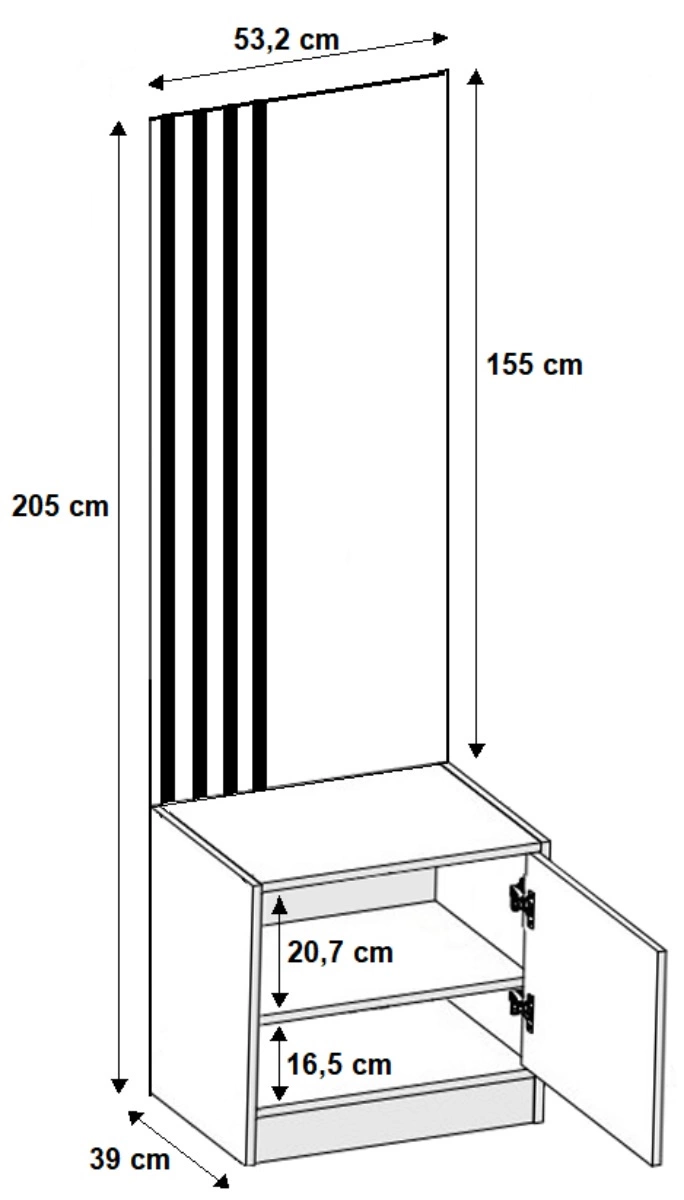 - Die Fronten des Kleiderschranks und des Schuhschranks sind universell, sie können auf der linken oder rechten Seite montiert werden.