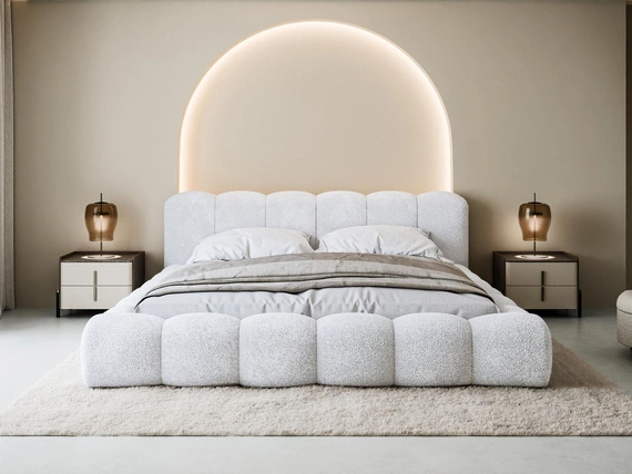 - Zartheit, Wärme und zeitlose Eleganz – das zeichnet das Polsterbett LUX mit Holzrahmen 200x200 in Weiß aus.