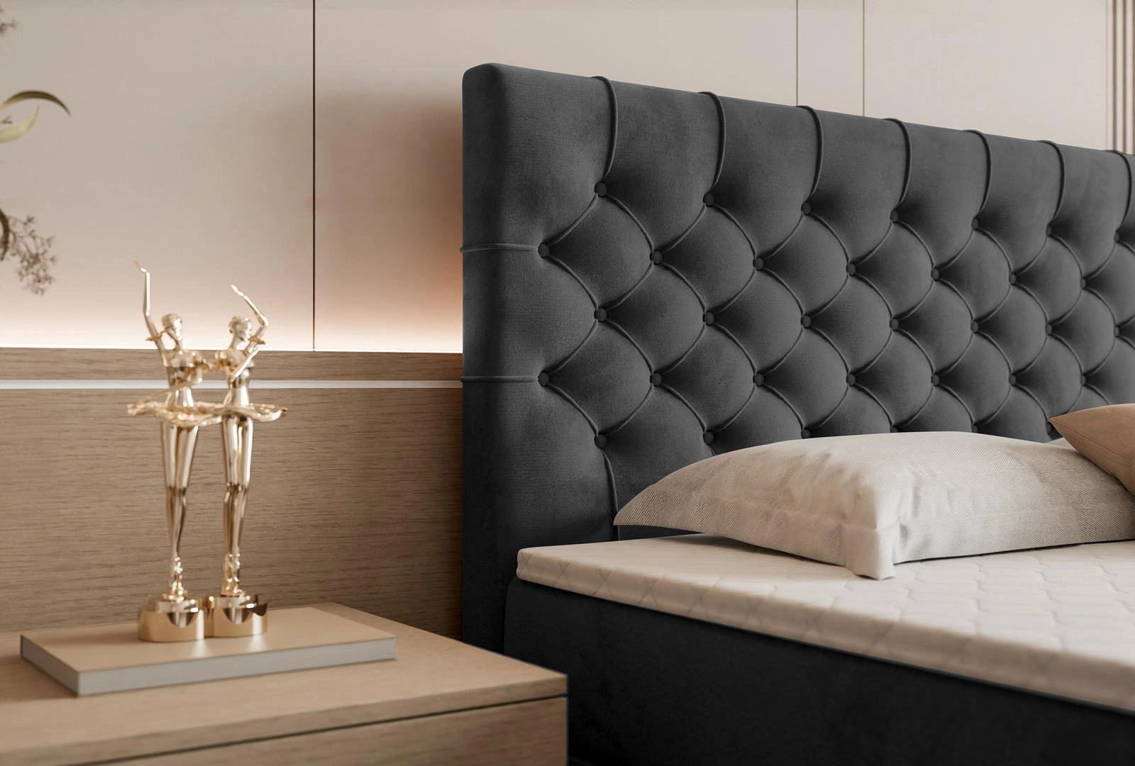 Glamouröses Samtbett mit hohem Komfort Graphit 180x200 MIAMI
