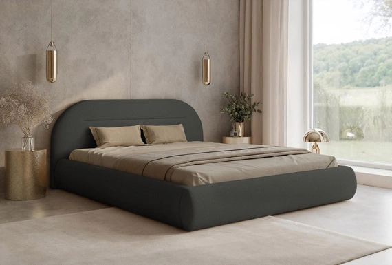 - Minimalistische Graphit Polsterbett ARVEN Metallrahmen 160x200 mit einzigartigem, abgerundetem Kopfteil – perfekt für ein modernes Schlafzimmer. Schau es dir an!