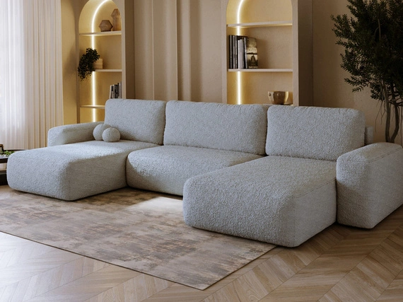 - Moderne Sofa U-Form Tedis überzeugt durch ihre weiche Bouclé Teddy Stoff. Perfekt als kuscheliges Sofa für entspannte Abende. Schau dir das Grau Modell an!