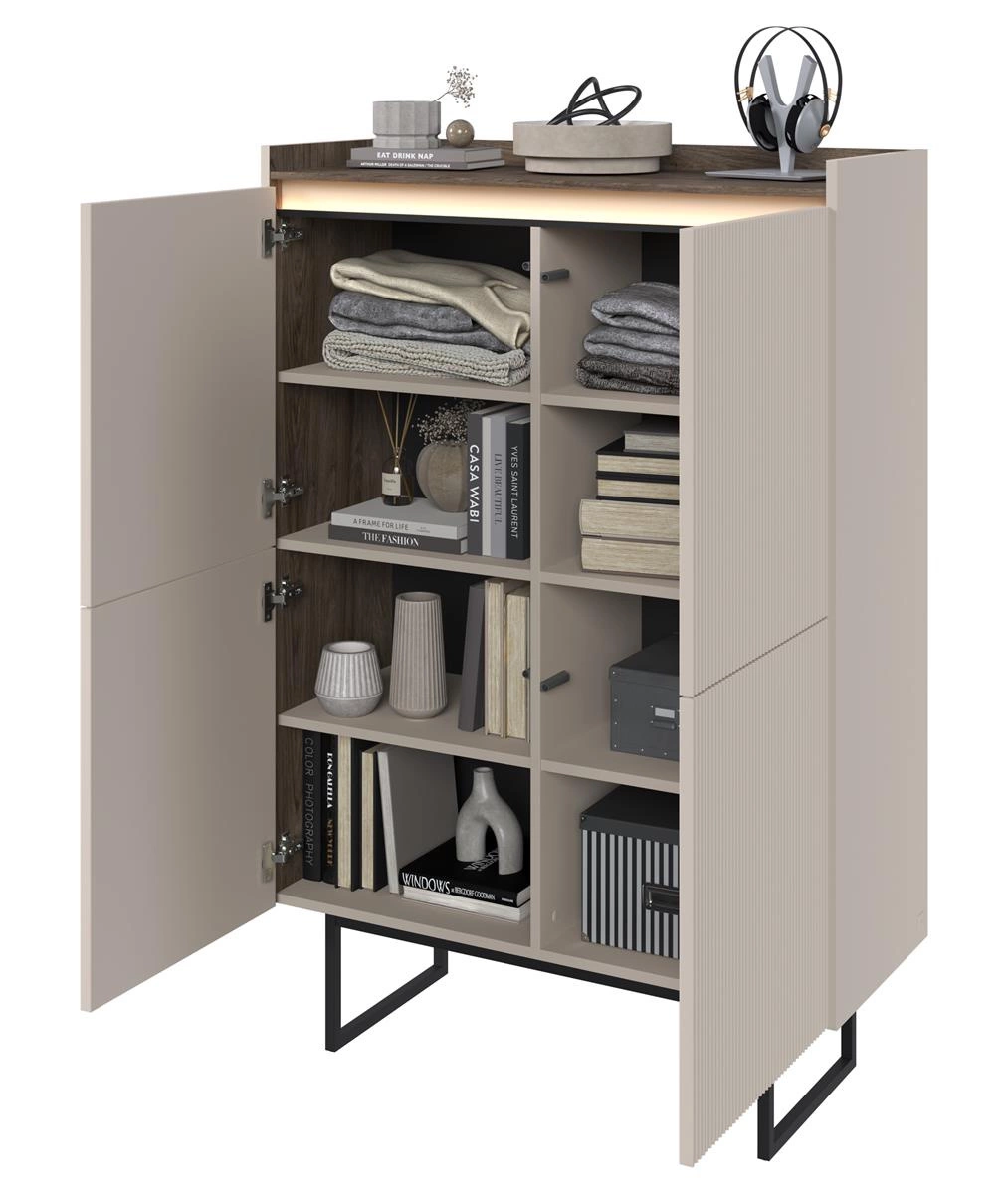 Highboard Modern DENI Beige/Eiche Dunkel
