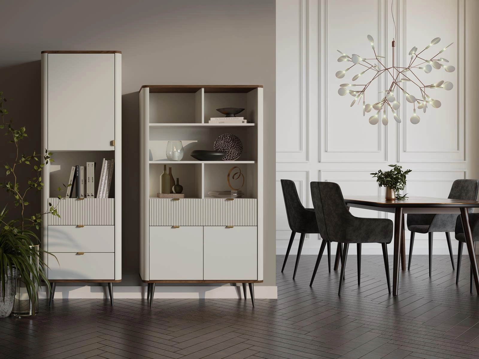 Hohe Kommode auf Füße LILIA Kaschmir + Graphit