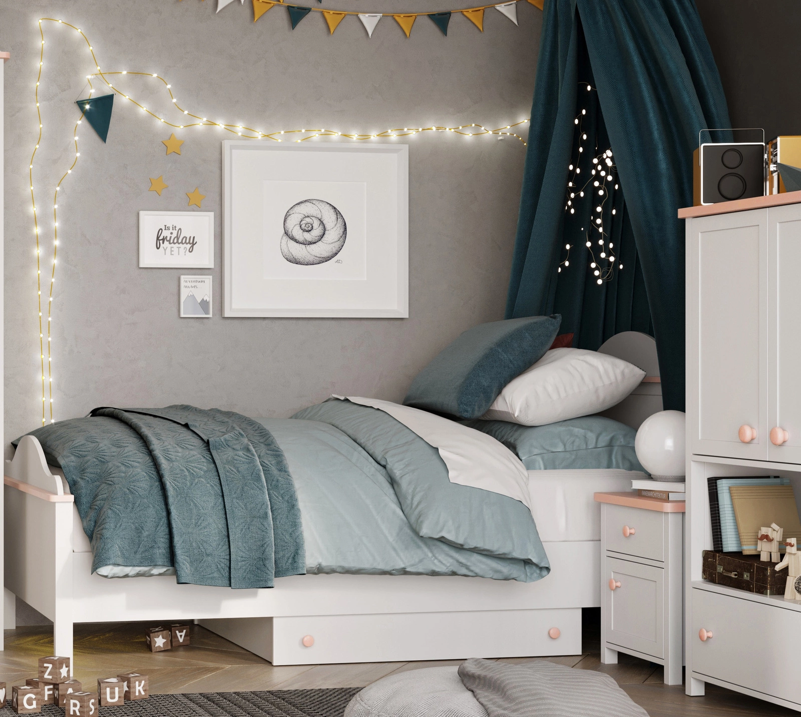 Kinderbett Mädchenbett LARA mit Matratze und zwei Schubladen