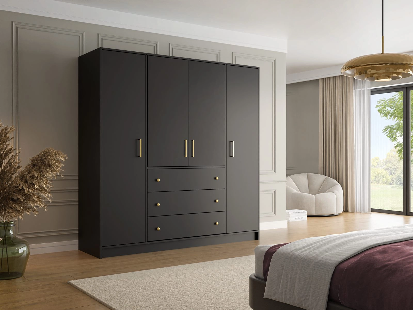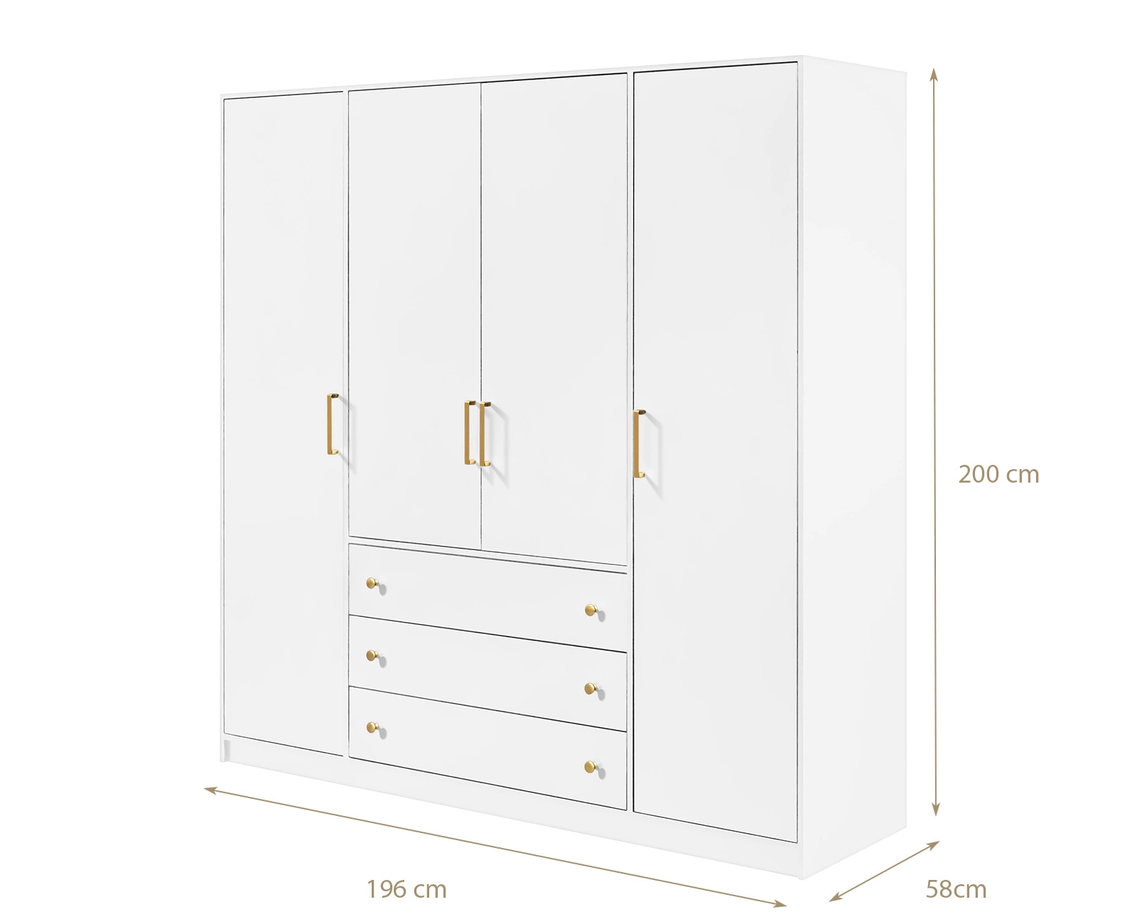Kleiderschrank mit 3 Schubladen RETRO D4 Gold Griffe