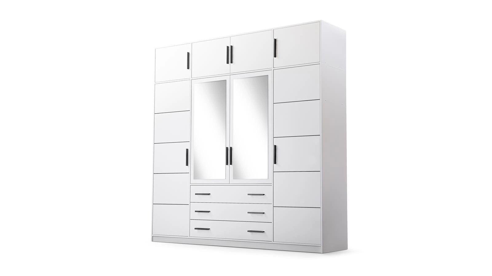 Kleiderschrank mit 4-türen und 3 Schubladen ALEX Weiß