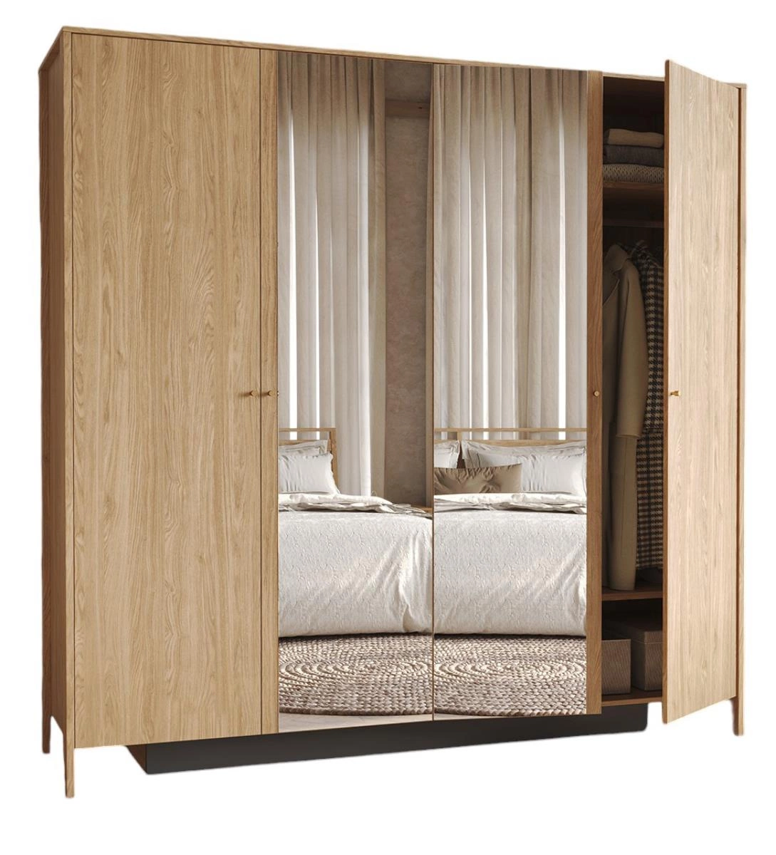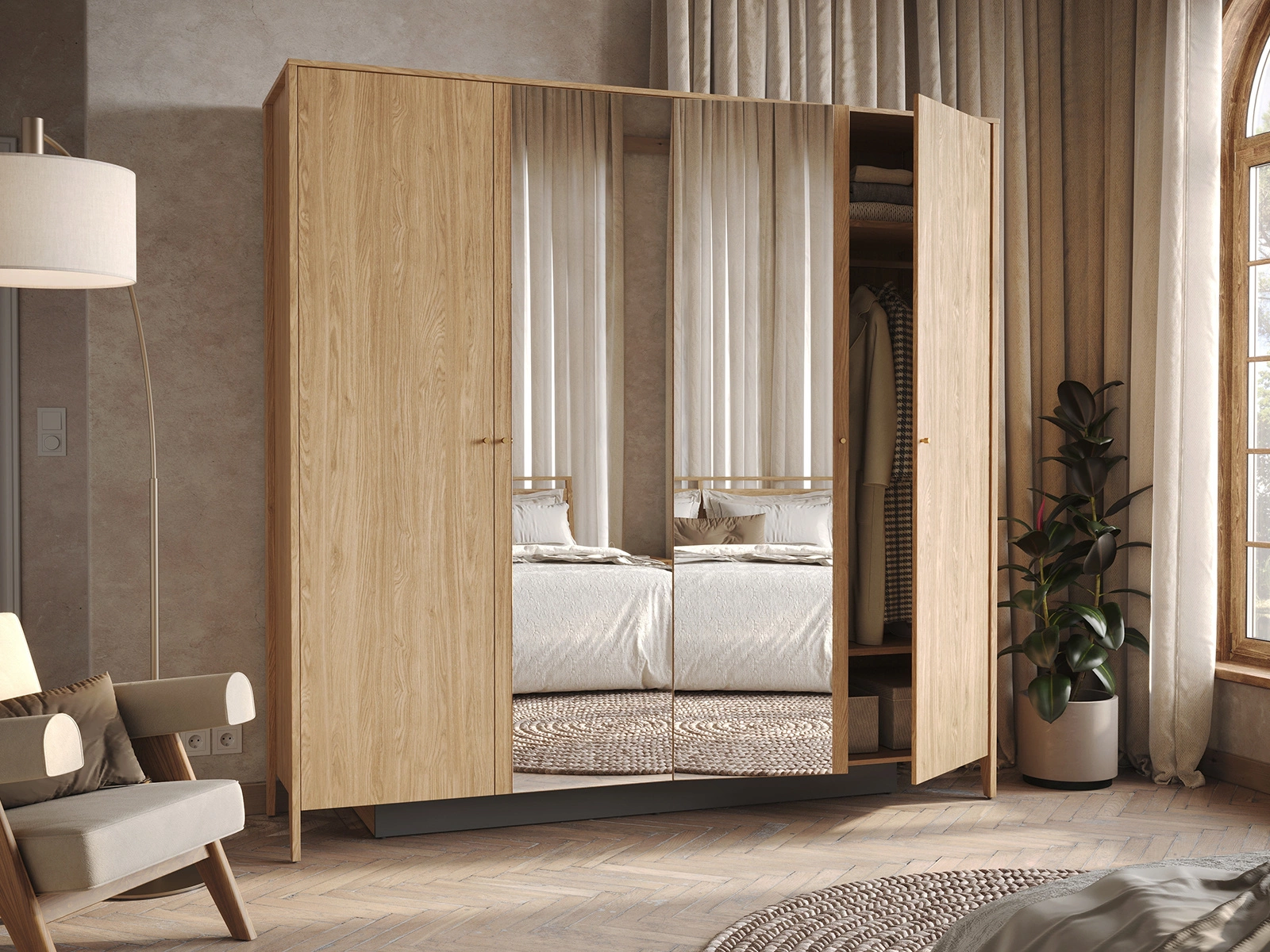 Kleiderschrank mit 4 Türen und Spiegel MAKS Eiche geölte