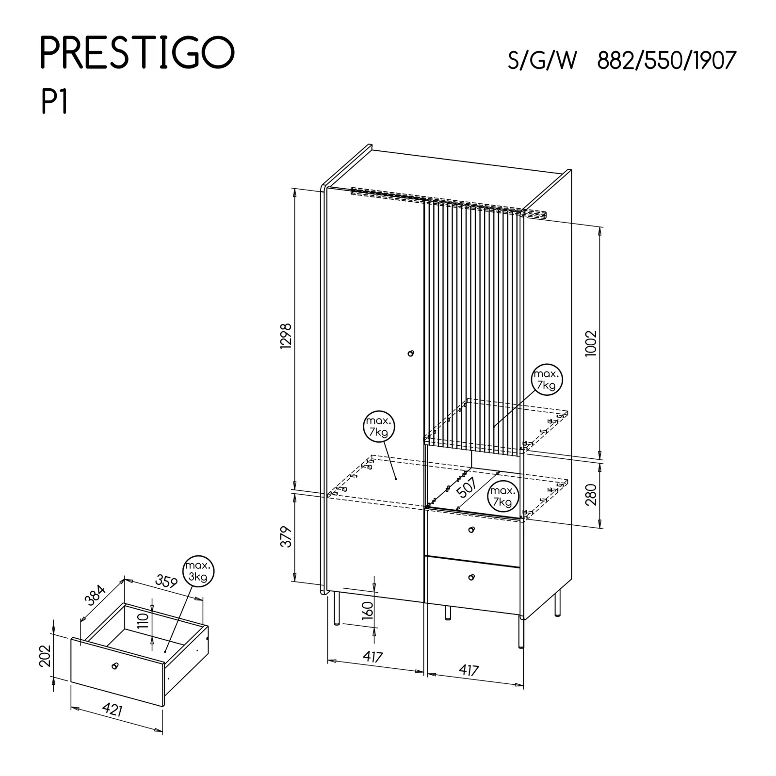Kleiderschrank mit gerifflete COMO Schwarz/ Nussbaum