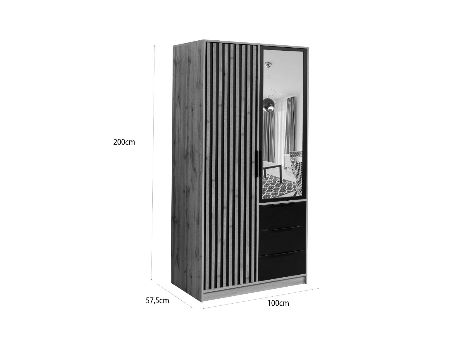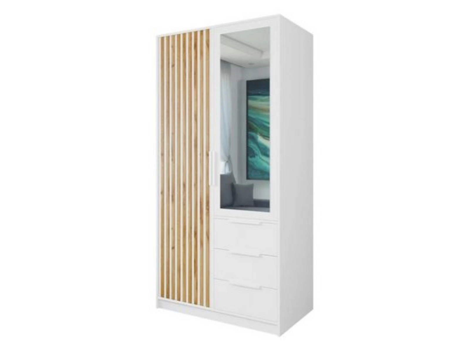 Kleiderschrank mit Lamellen OLS Eiche Wotan + Weiß