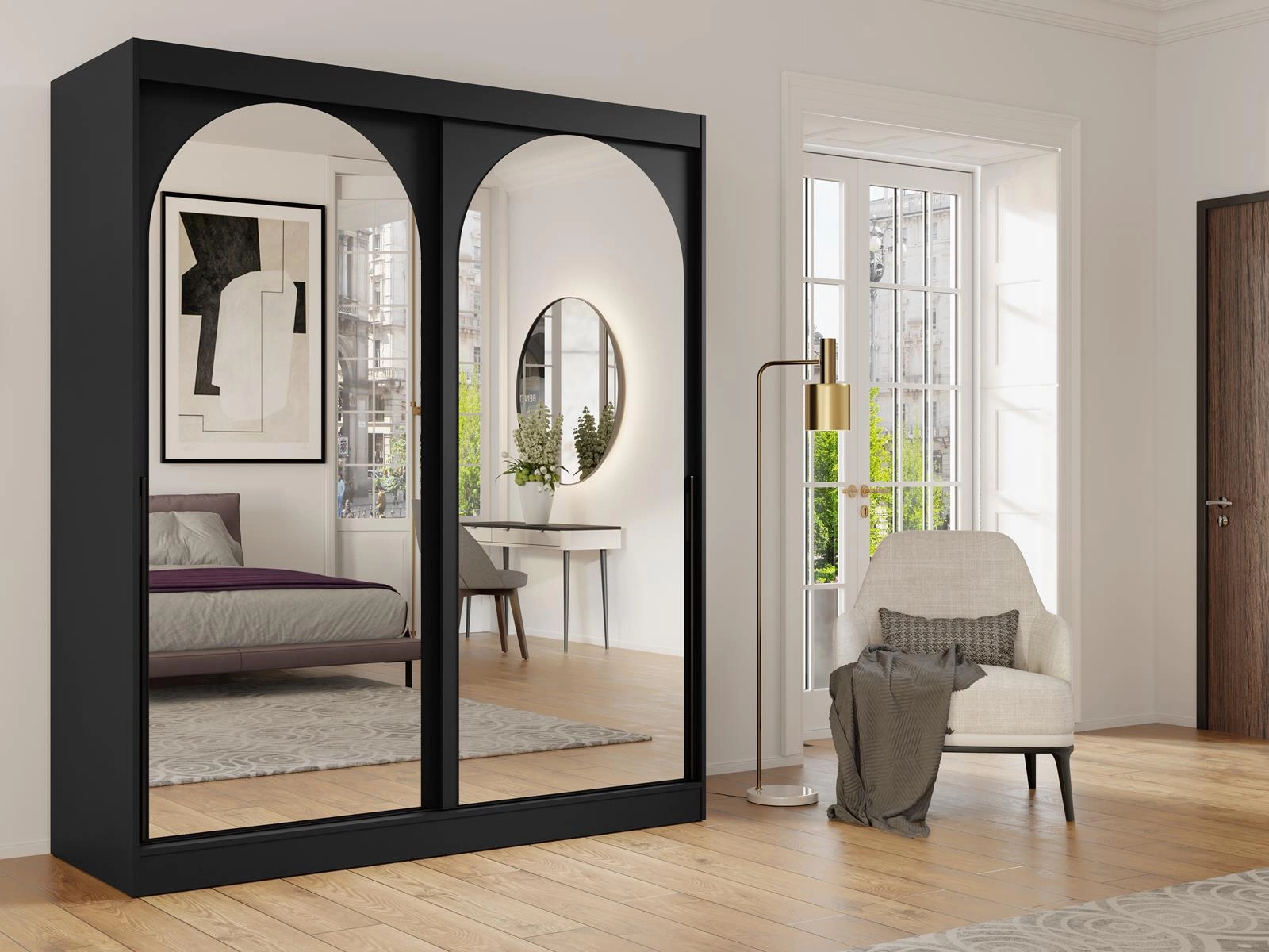 Kleiderschrank mit Spiegel 180 Breit Schwarz LUCY