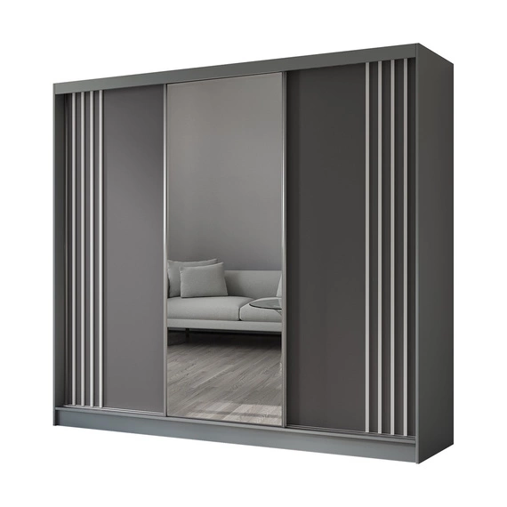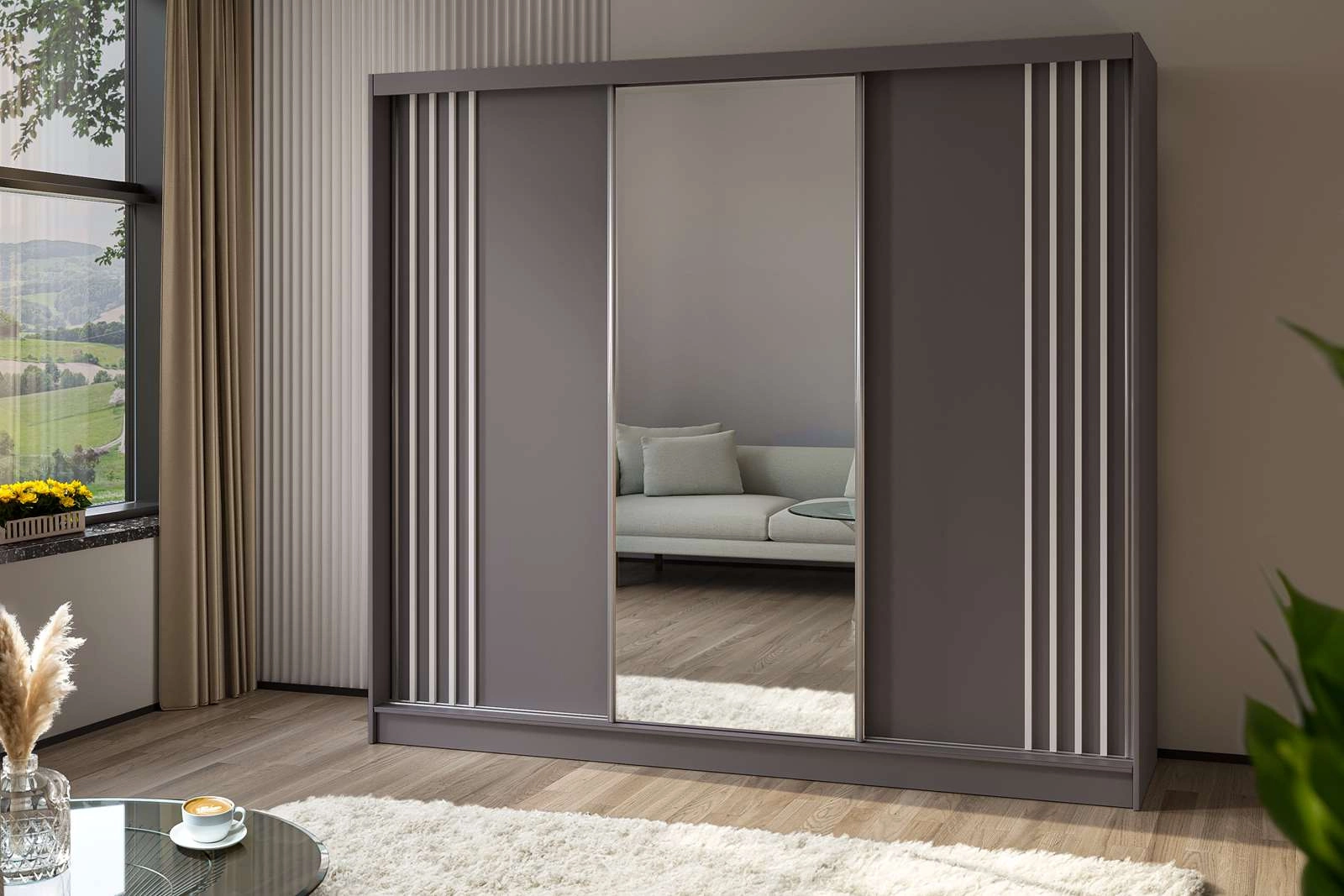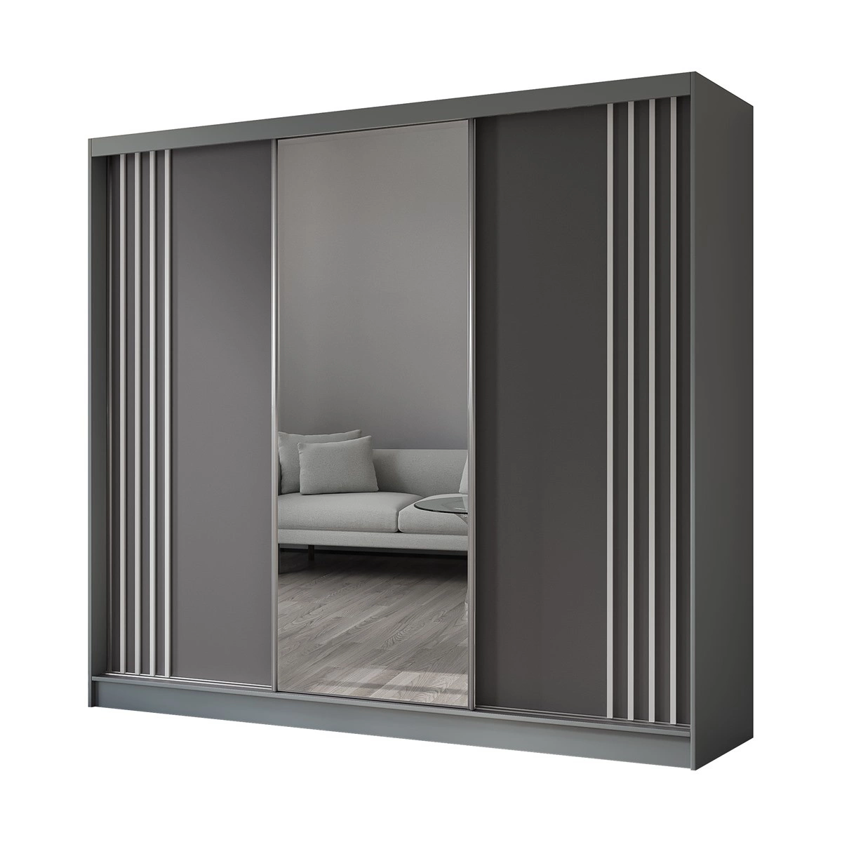 Kleiderschrank mit Spiegel MALTA Breite: 240 cm Grau + Weiß