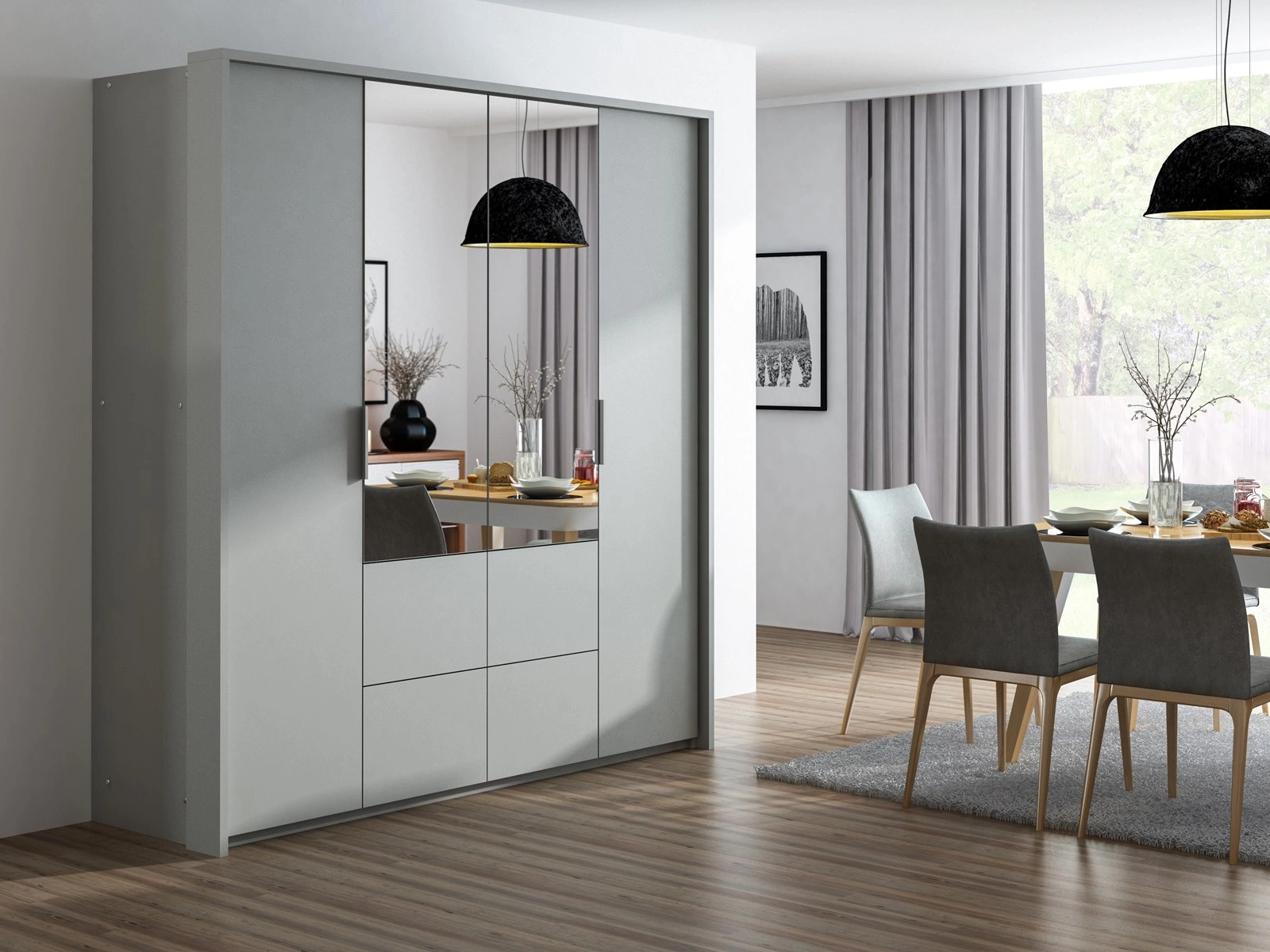 Kleiderschrank mit Spiegel und 4 Schubladen WAKS Grau