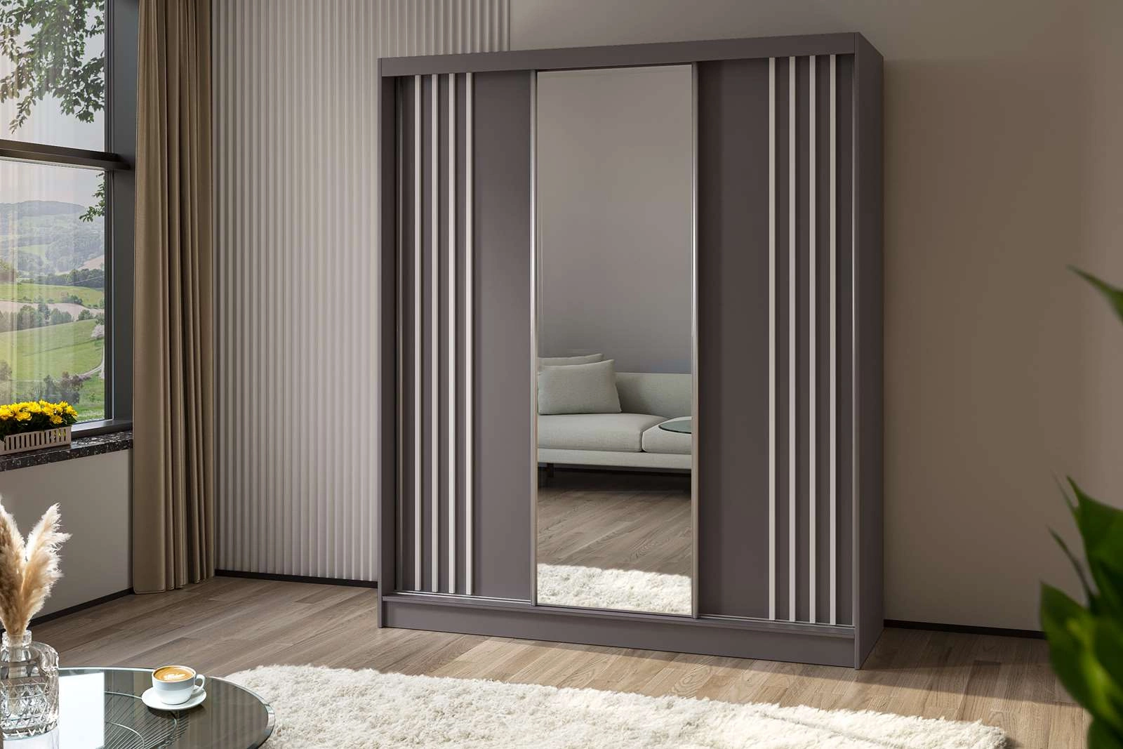 Kleiderschrank mit Spiegel und Lamellen MALTA Grau + Weiß