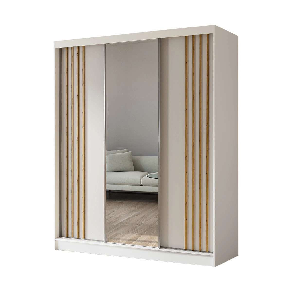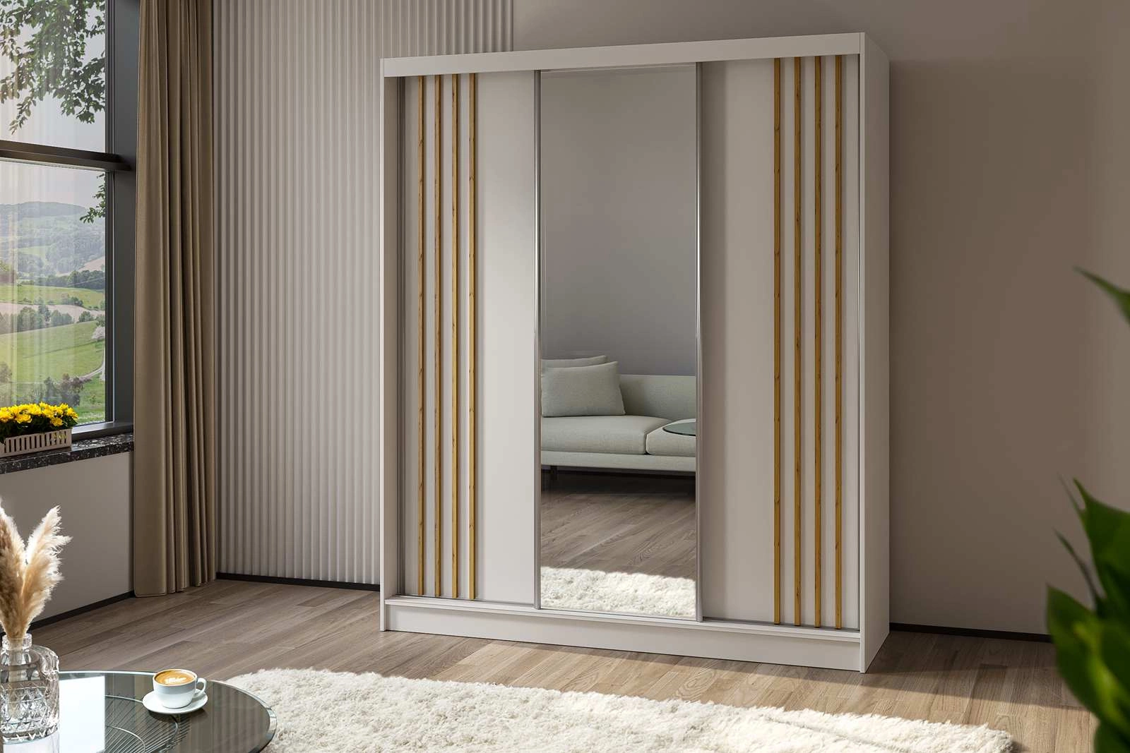 Kleiderschrank mit Spiegel und Lamellen MALTA Weiß + eiche