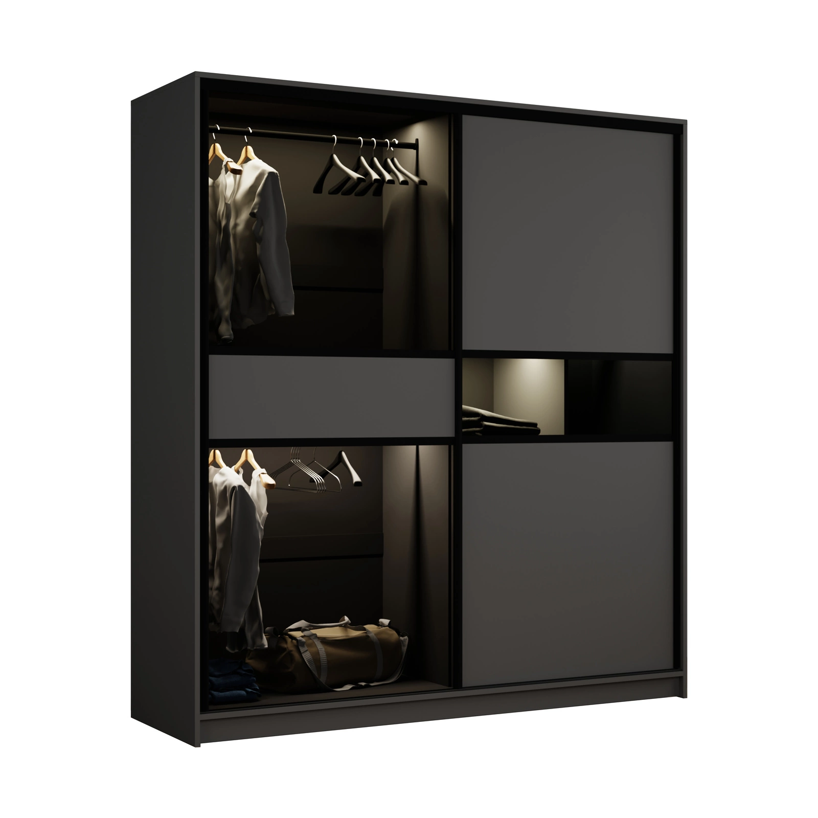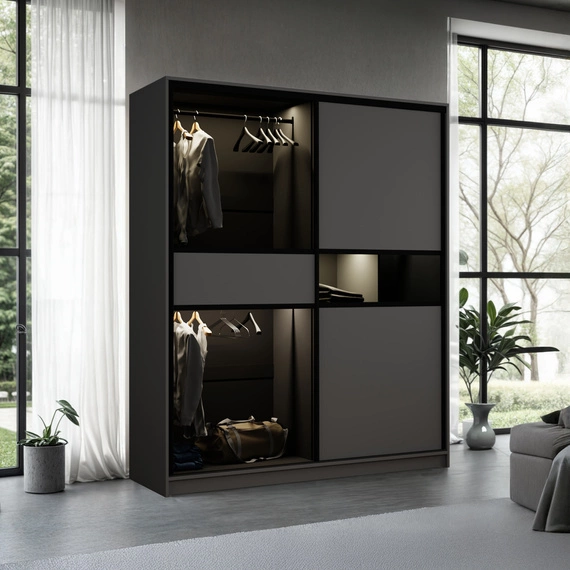 Kleiderschrank Schwarz modern mit Glasfront getönt