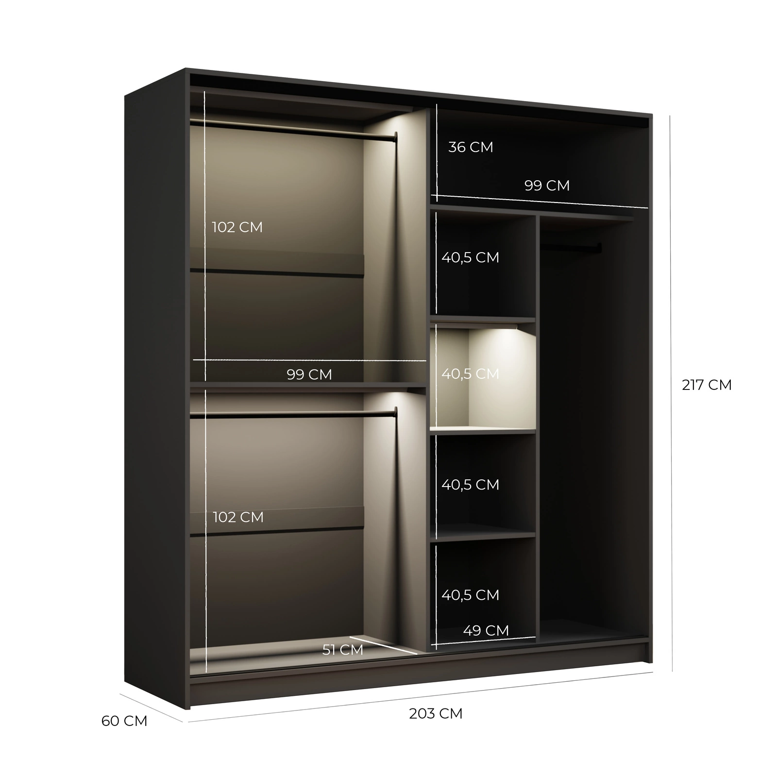 - Tiefe: 60cm,