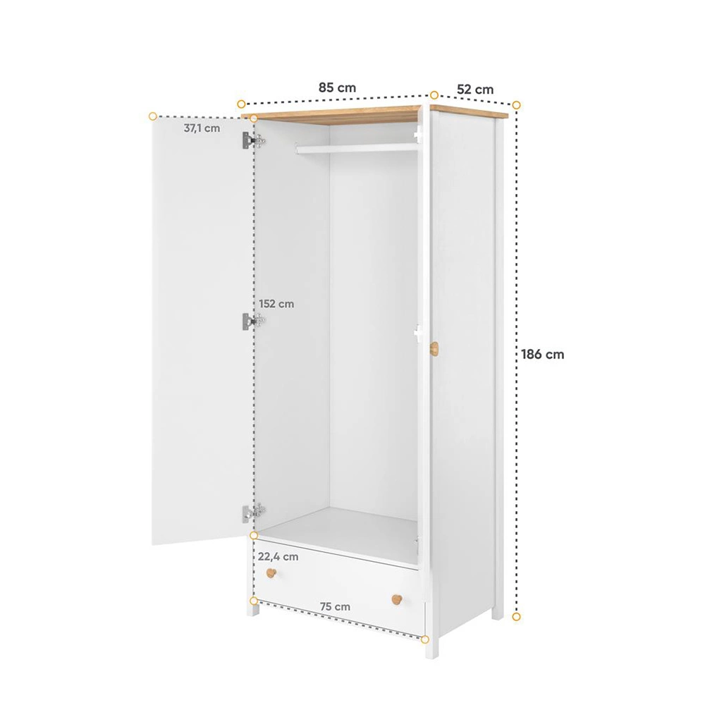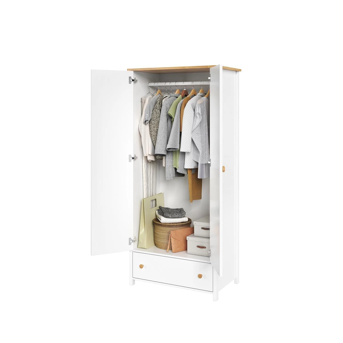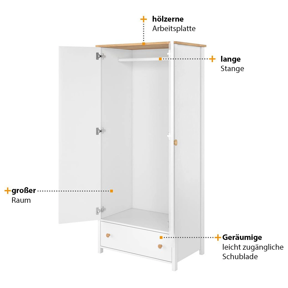 Kleiderschrank TOMMY mit 1 Schublade Drehtürenschrank Weiß