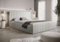 Komfort Polsterbett Bouclé Bett mit Bettkasten 160x100 Creme BUBBLE II