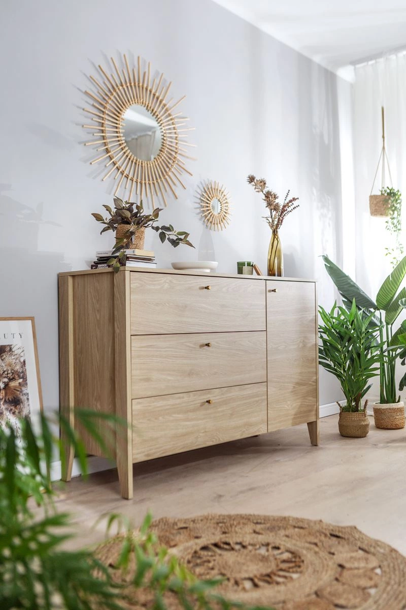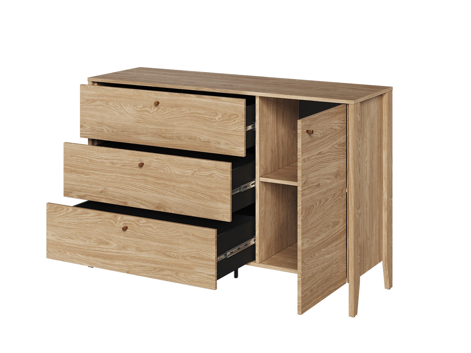 Kommode mit 3 Schubladen und Tür MAKS Eiche Geölte