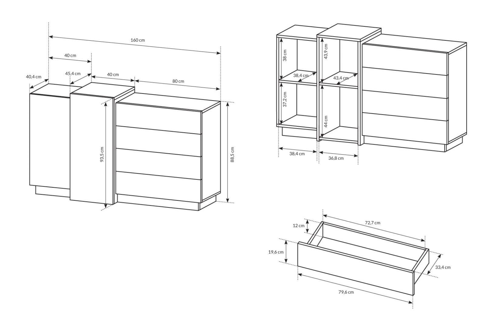 Kommode mit 4 Schubladen und 2 Türen NONI