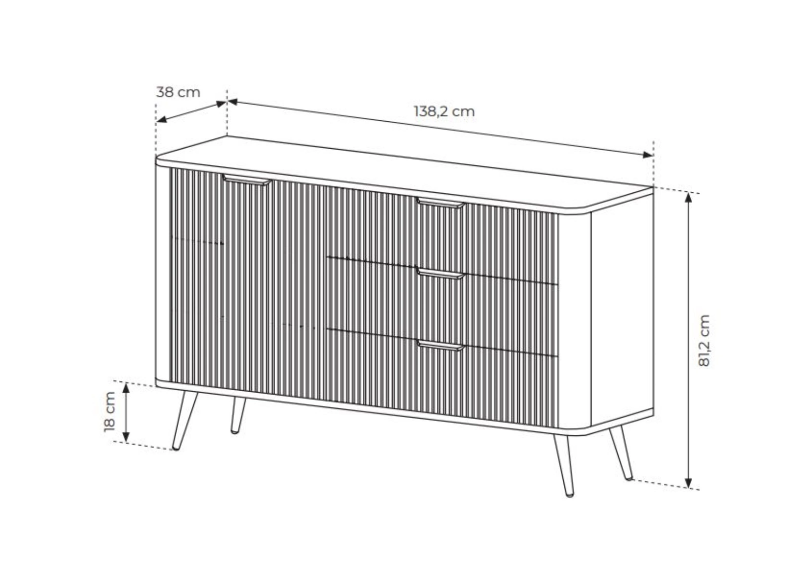 - Fronten: MDF-Platte 18 mm, gefräst und mit PVC foliert