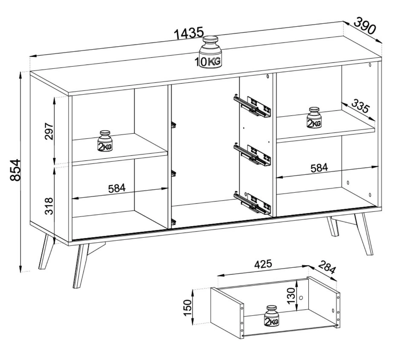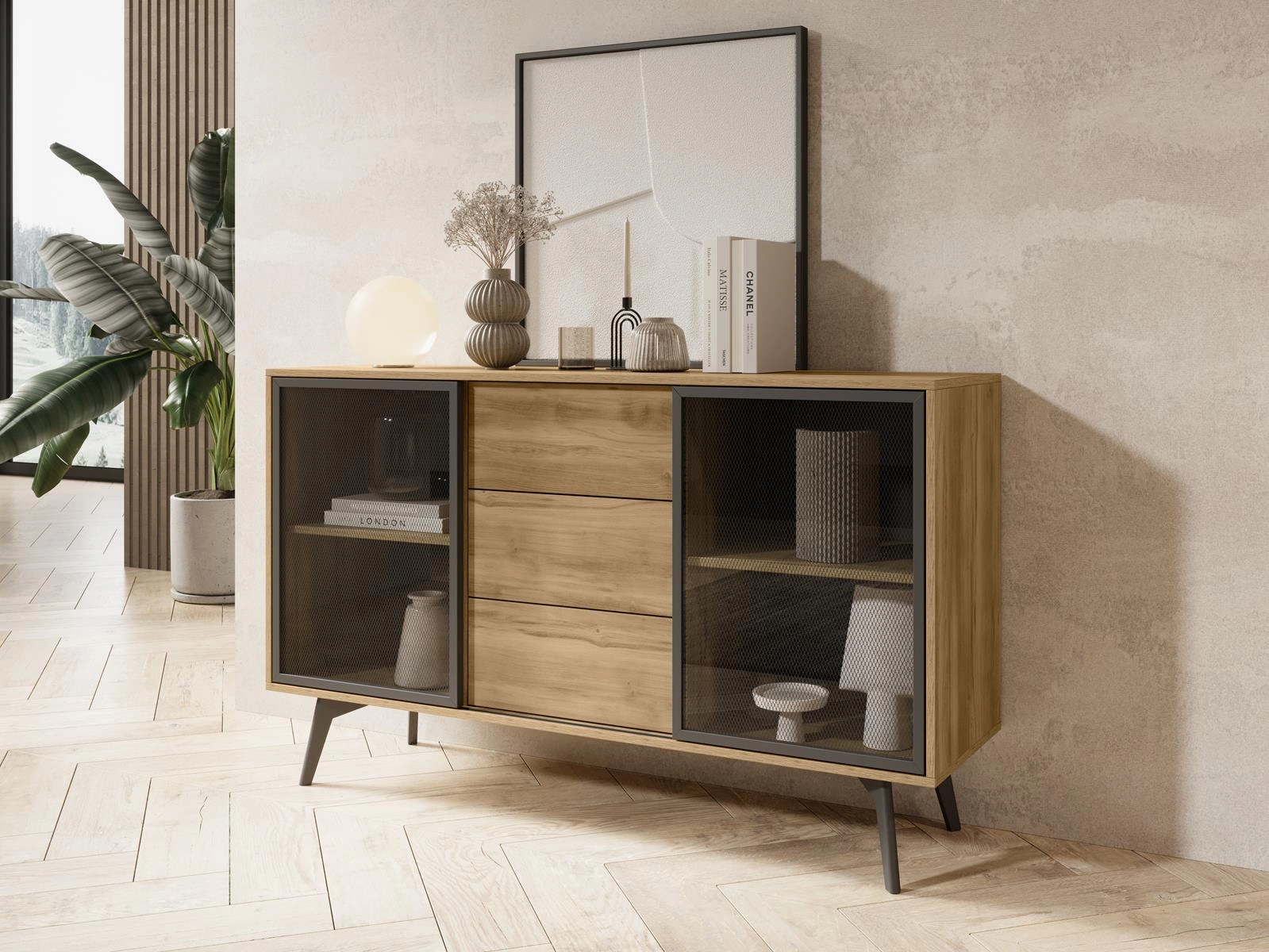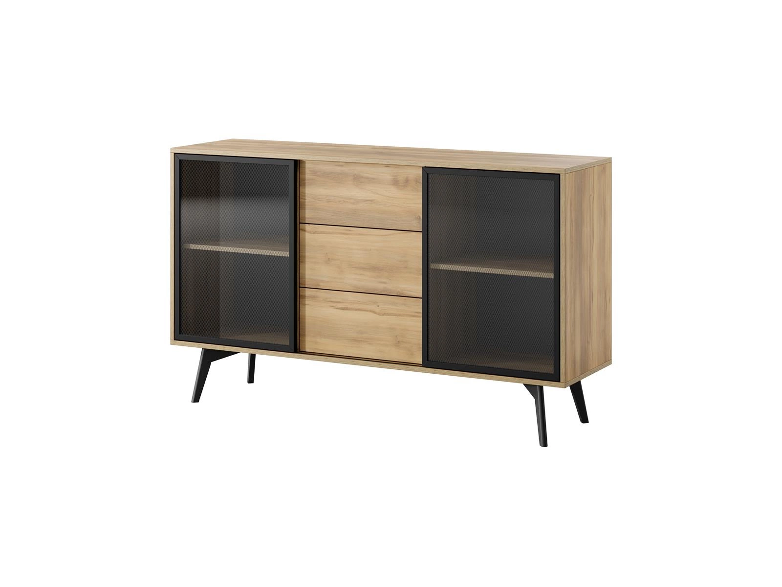 Kommode mit drei Schubladen und zwei Schwebetüren Eiche SLOW