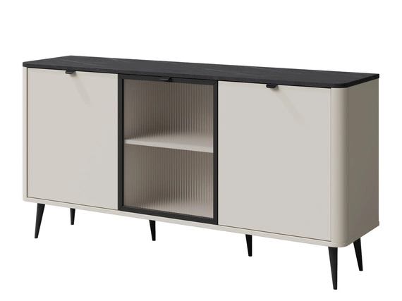 Kommode mit Glastür LILIA Kaschmir + Graphit