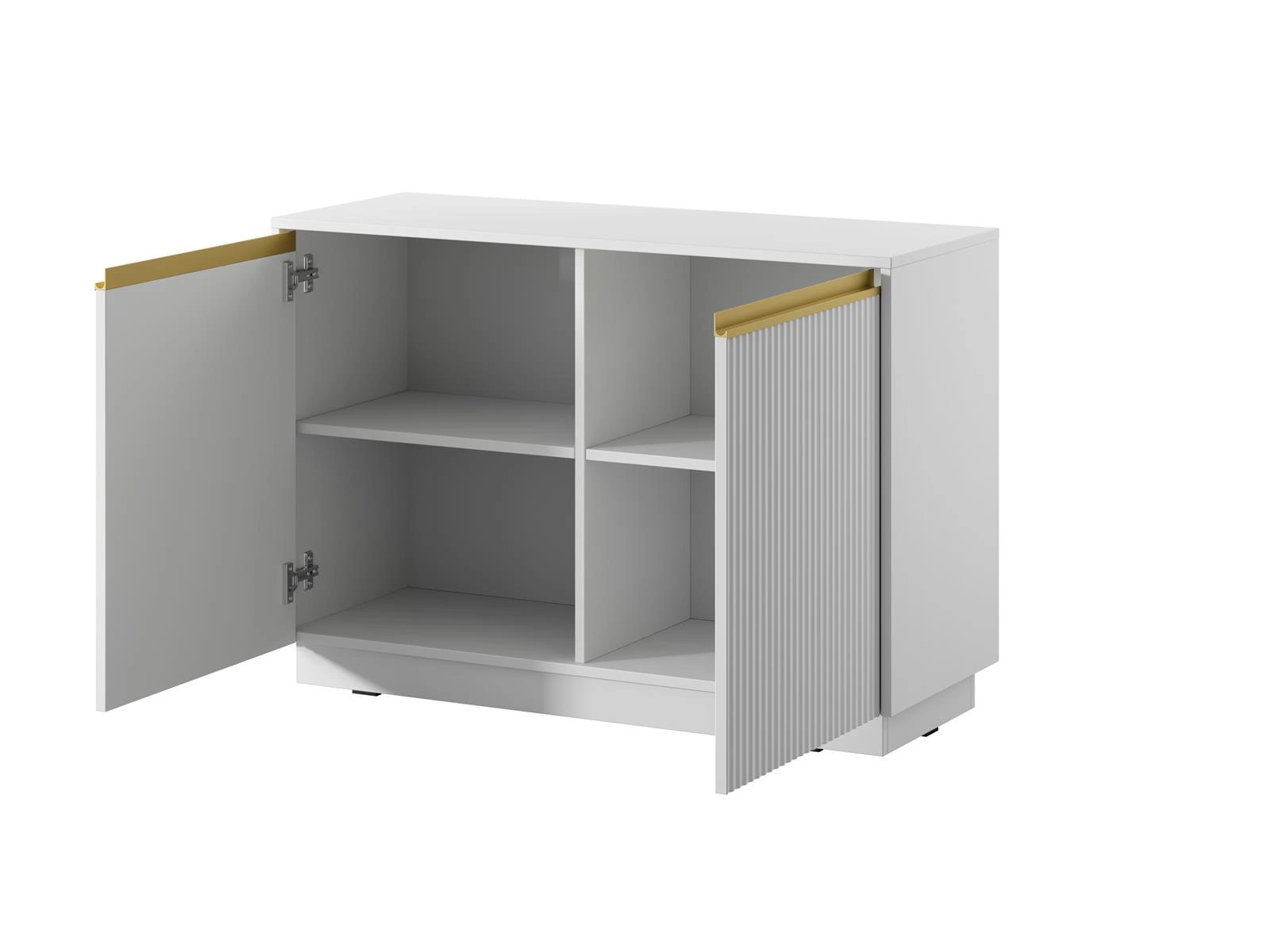 Kommode mit Rillenstruktur Gold Griffe GLAM Weiß