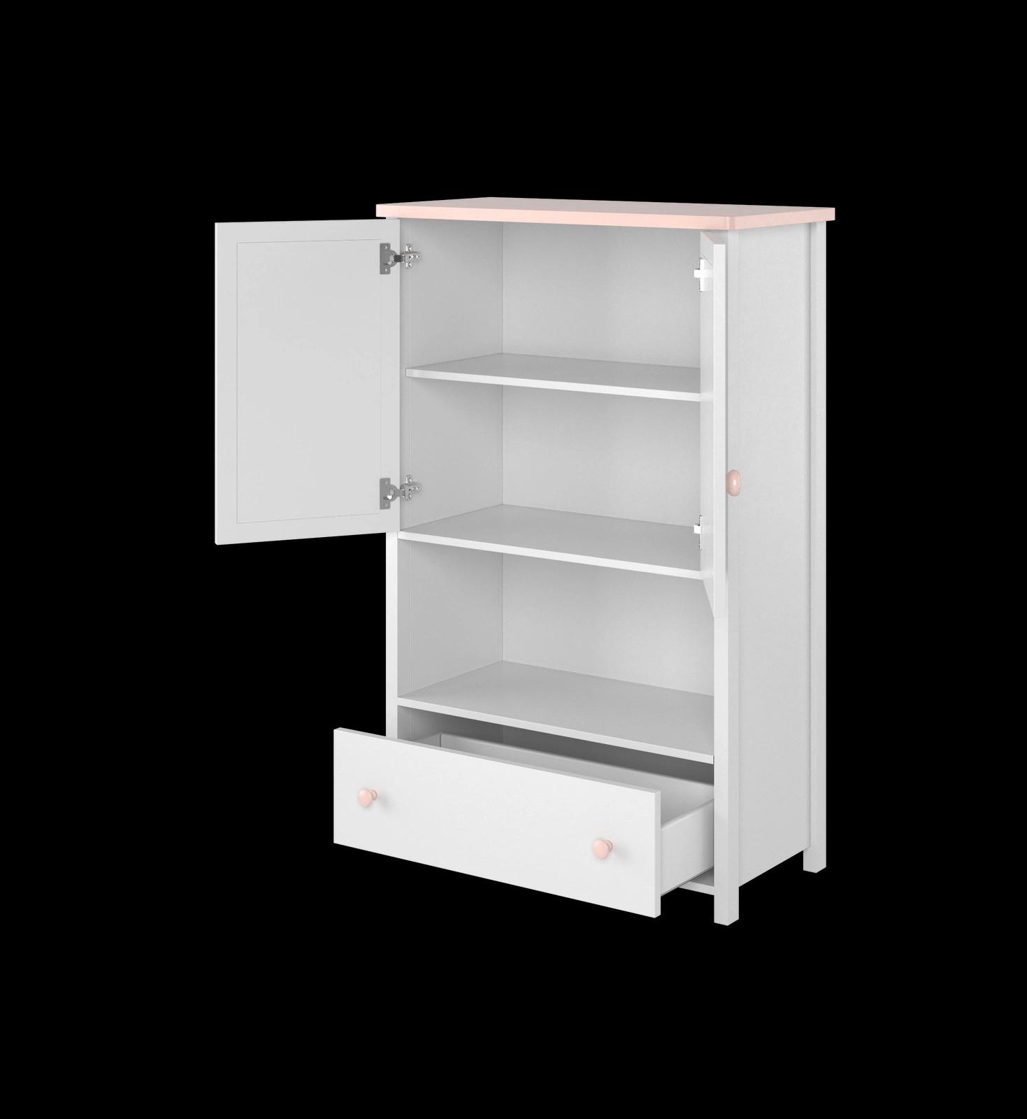 Kommode mit zwei Türen Regal LARA Weiß+Rosa