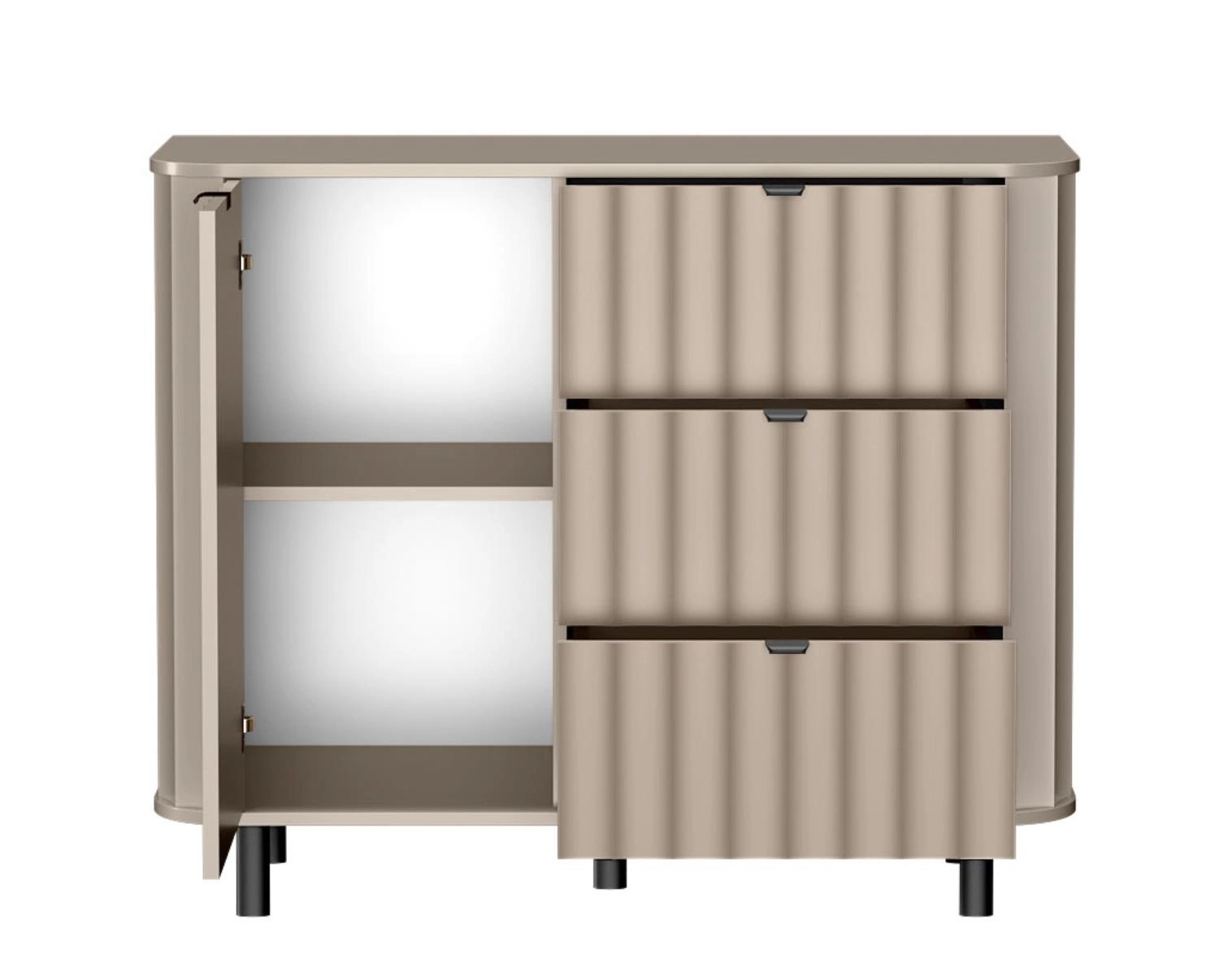 - Modernes Design – geriffelte Fronten und abgerundete Kanten.