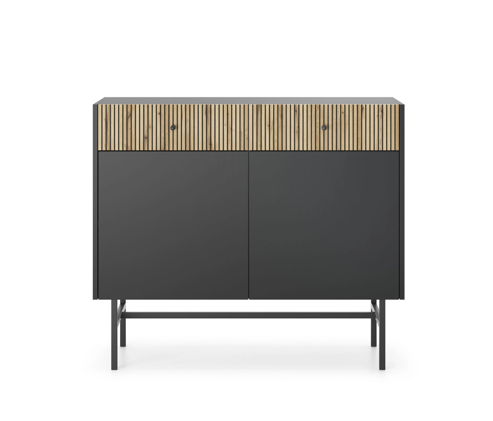 Kommode schmal mit 2 Schubladen Eiche artisan+schwarz DAVS