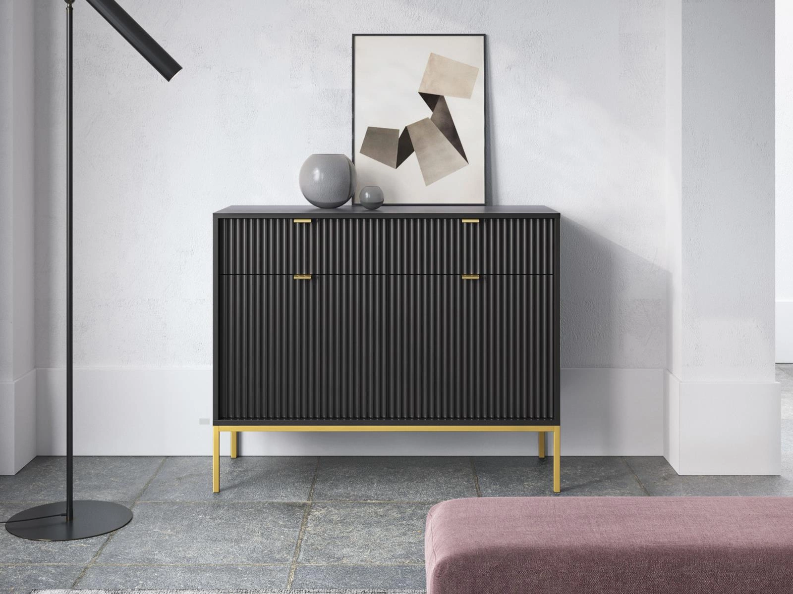 Kommode Schmal NANCY Schwarz+Gold