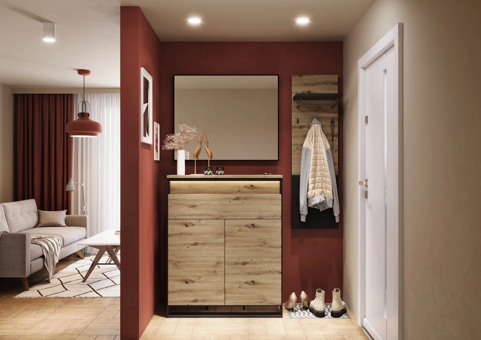 Loft Set LIMA, (Kommode, Kleiderbügel, Spiegel)