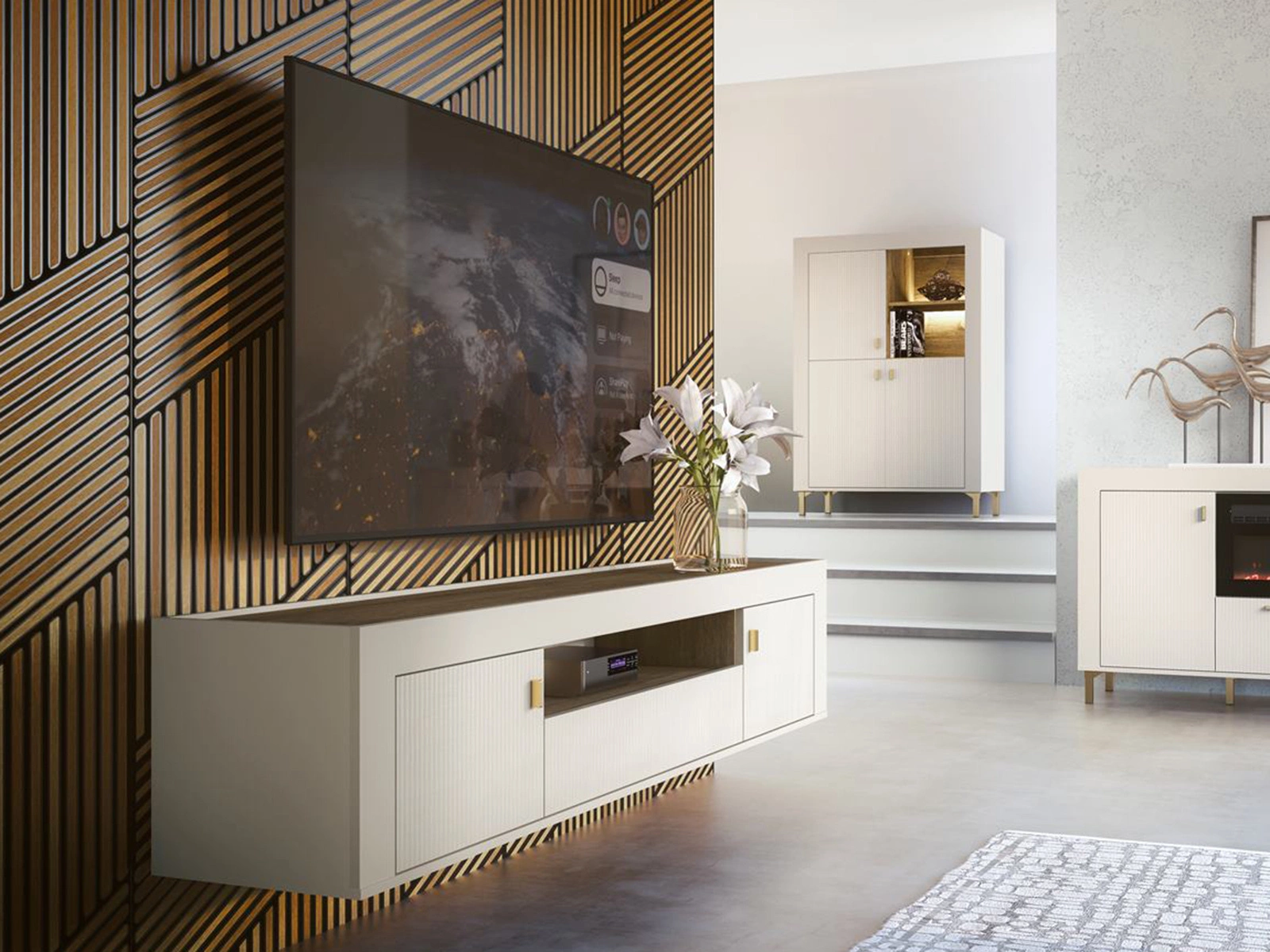 Lowboard hängend mit Lamellenoptik TRENDS Kaschmir