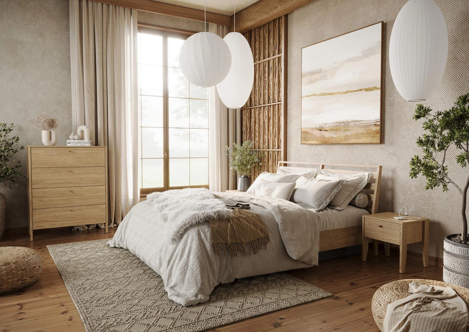 mit Bettkasten, skandinavisches Schlafzimmer MAKS