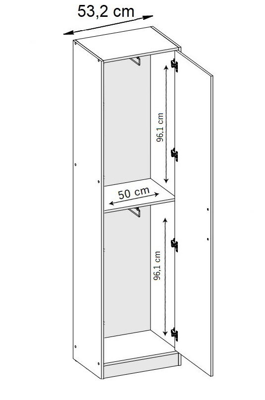 - Die Fronten des Kleiderschranks und des Schuhschranks sind universell, sie können auf der linken oder rechten Seite montiert werden.