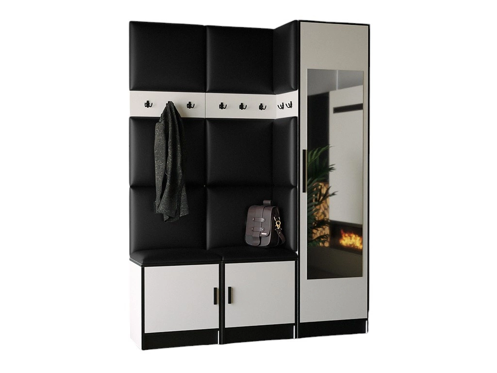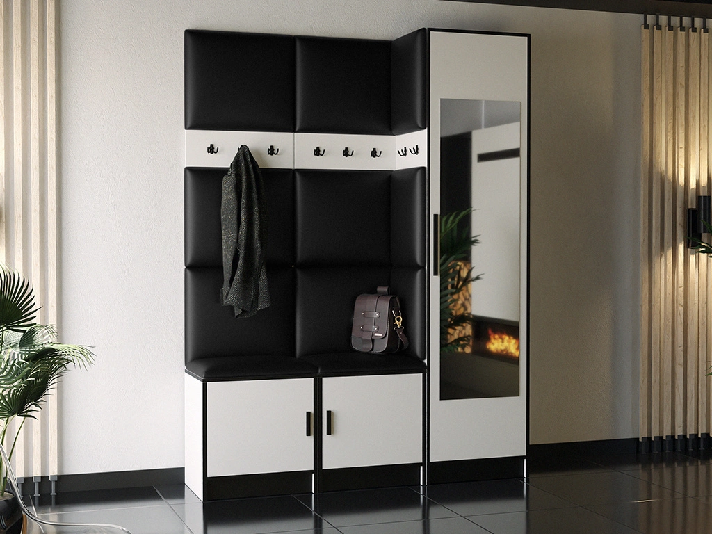 Moderne Garderoben-Set MALTI Weiß + Schwarz Öko-Leder