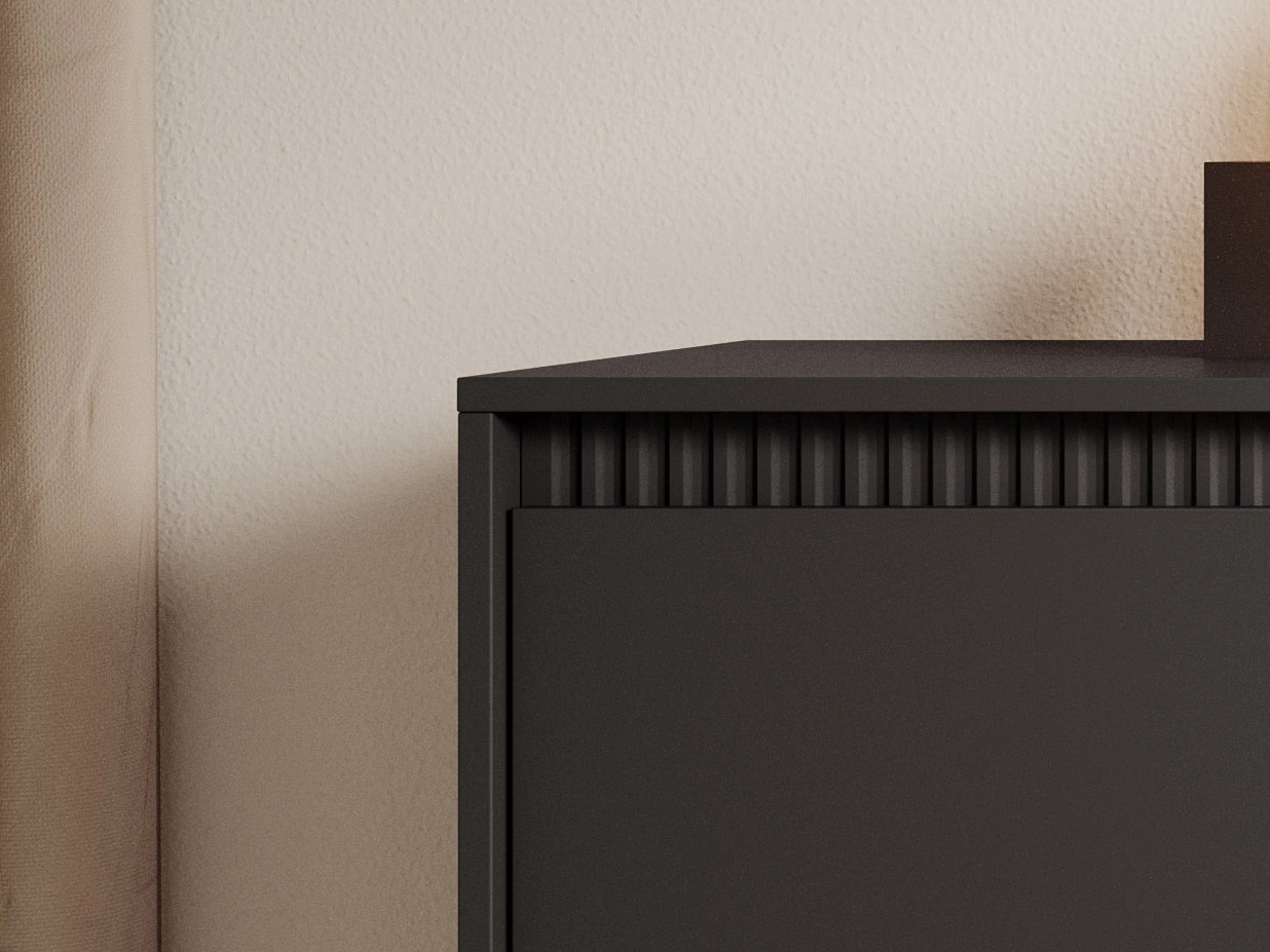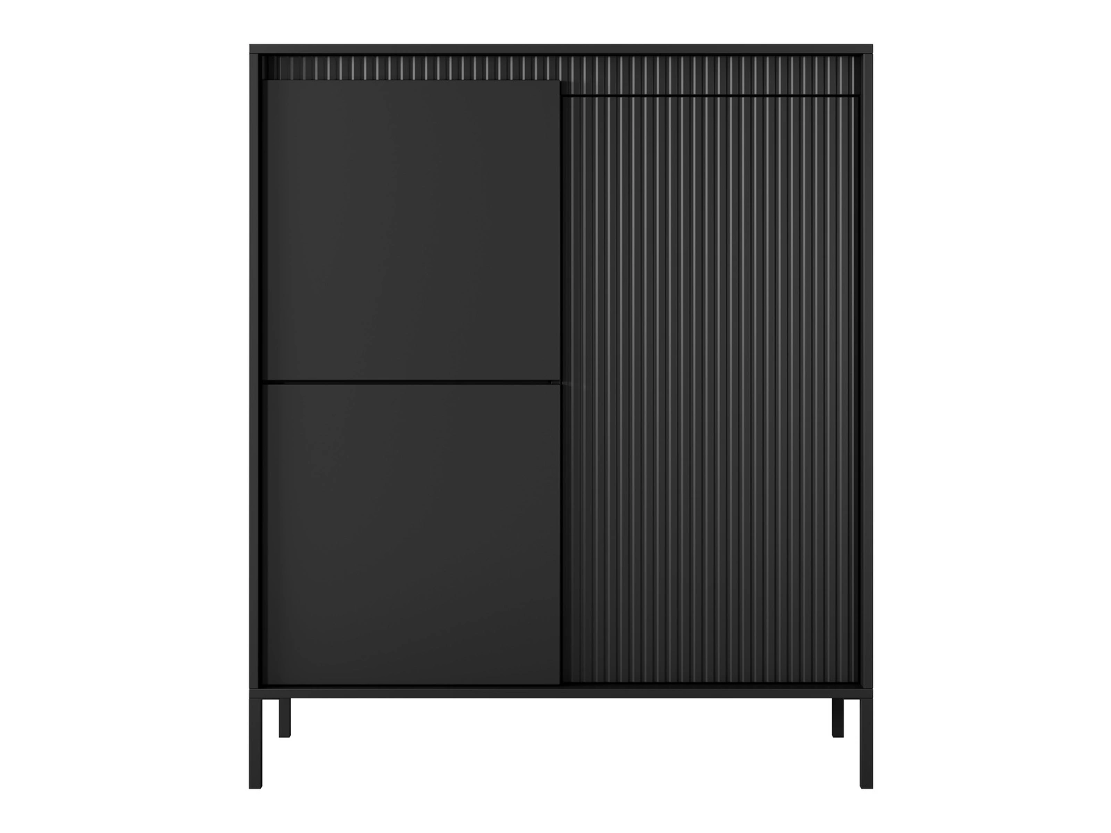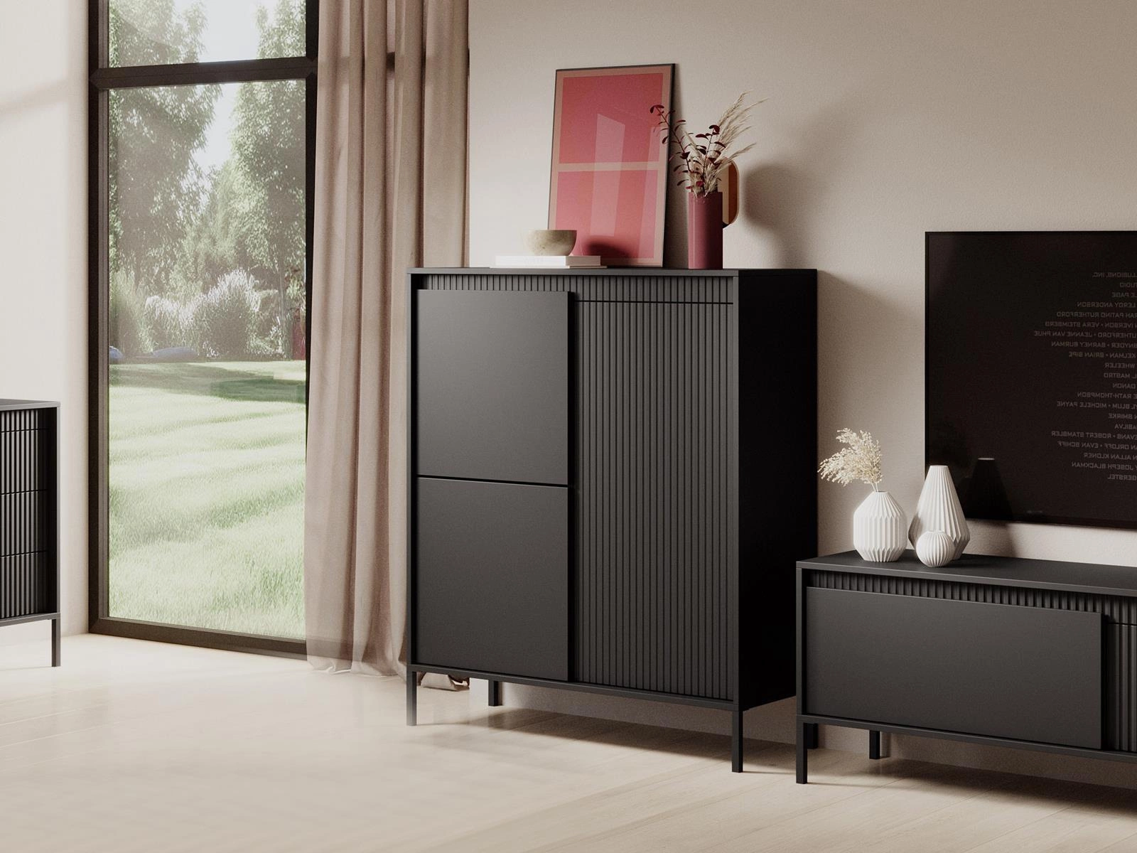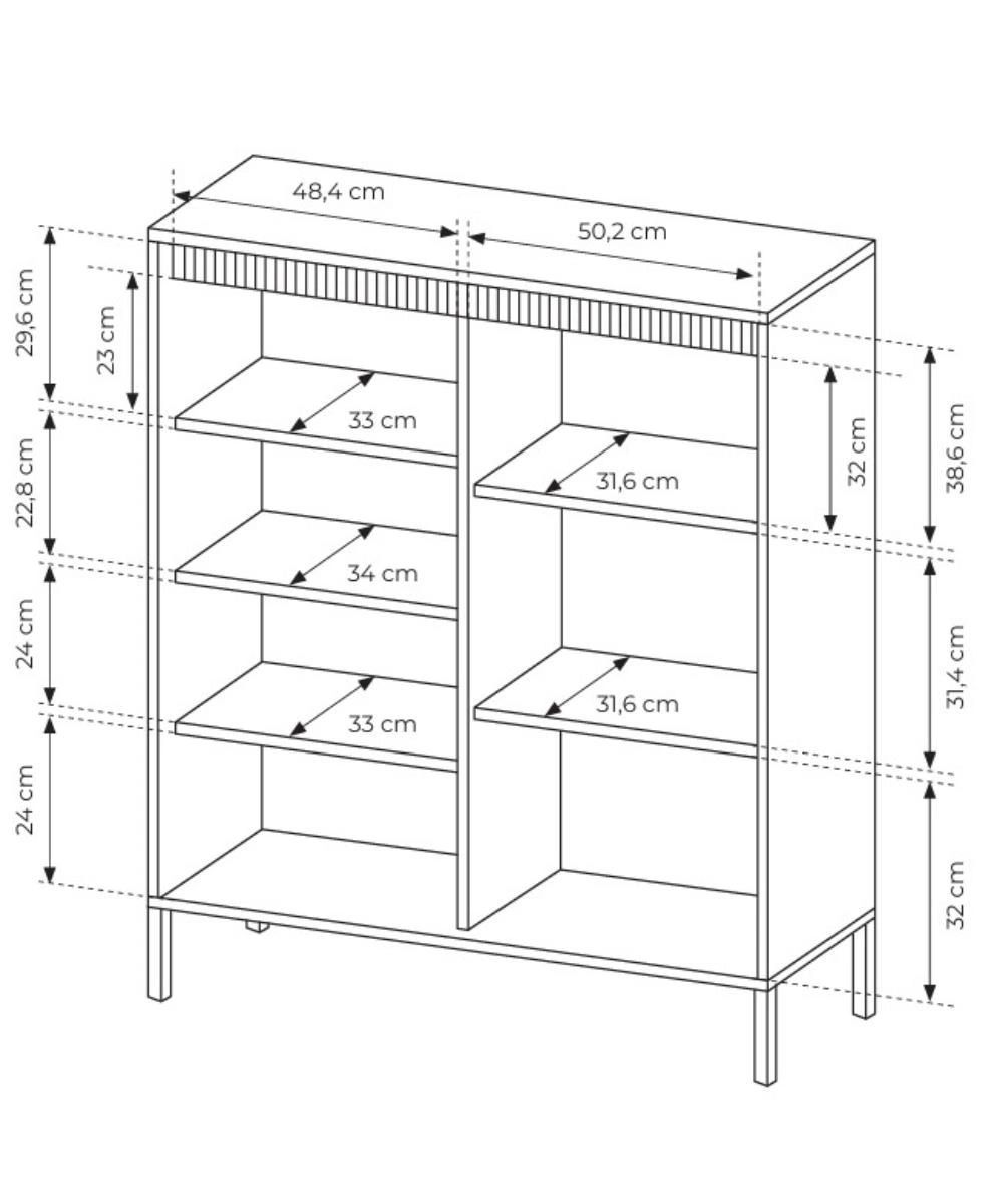 Die moderne Kommode ist nicht nur stilvoll, sondern auch funktional. Ihre geräumigen Regale ermöglichen die Aufbewahrung verschiedenster Gegenstände und tragen gleichzeitig zur Ordnung im Raum bei. Dank ihres modernen Designs fügt sie sich perfekt in zeitgemäße Innenräume ein und verleiht ihnen Charakter und Eleganz.