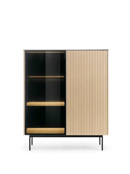 Moderne LED Vitrine Eiche geriffelt Glas OMBIS