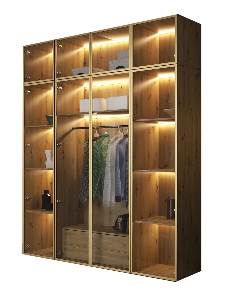 Moderner Drehtürenschrank mit Glasfront LED Beleuchtung Artisan STELLS