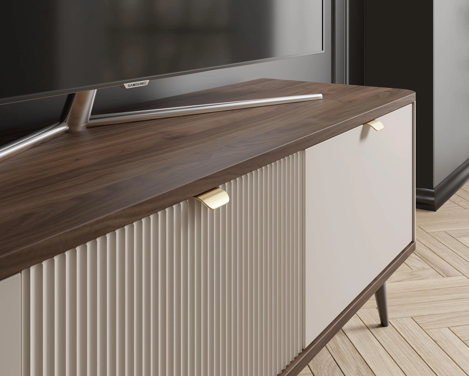 Moderner TV-Schrank LILIA Kaschmir + Graphit Breite: 130 cm