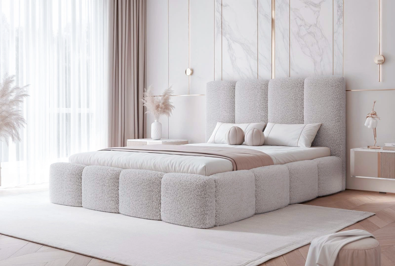 QUELLE zeichnet sich durch eine einzigartige Bouclé-Struktur aus, die oft als "Schafwolle" bezeichnet wird. Ihre weiche, gemütliche Textur verleiht Innenräumen einen besonderen Charakter und Eleganz und eignet sich sowohl für klassische als auch moderne Arrangements. Der Stoff QUELLE findet nicht nur in Wohnräumen Anwendung, sondern auch in gewerblichen Bereichen wie Hotels, Pensionen oder Restaurants, wo er eine angenehme Atmosphäre schafft und das Prestige des Raumes unterstreicht. .