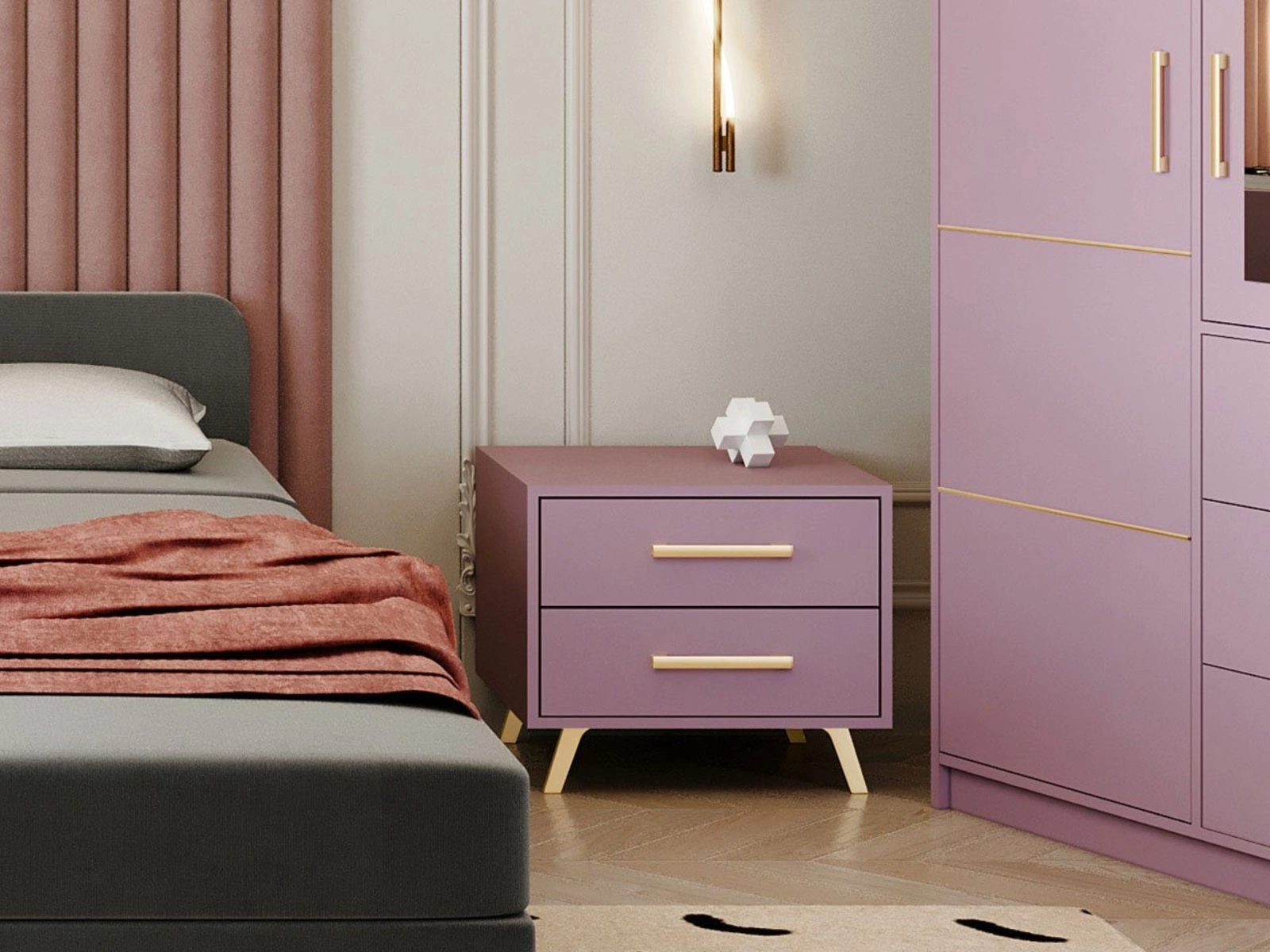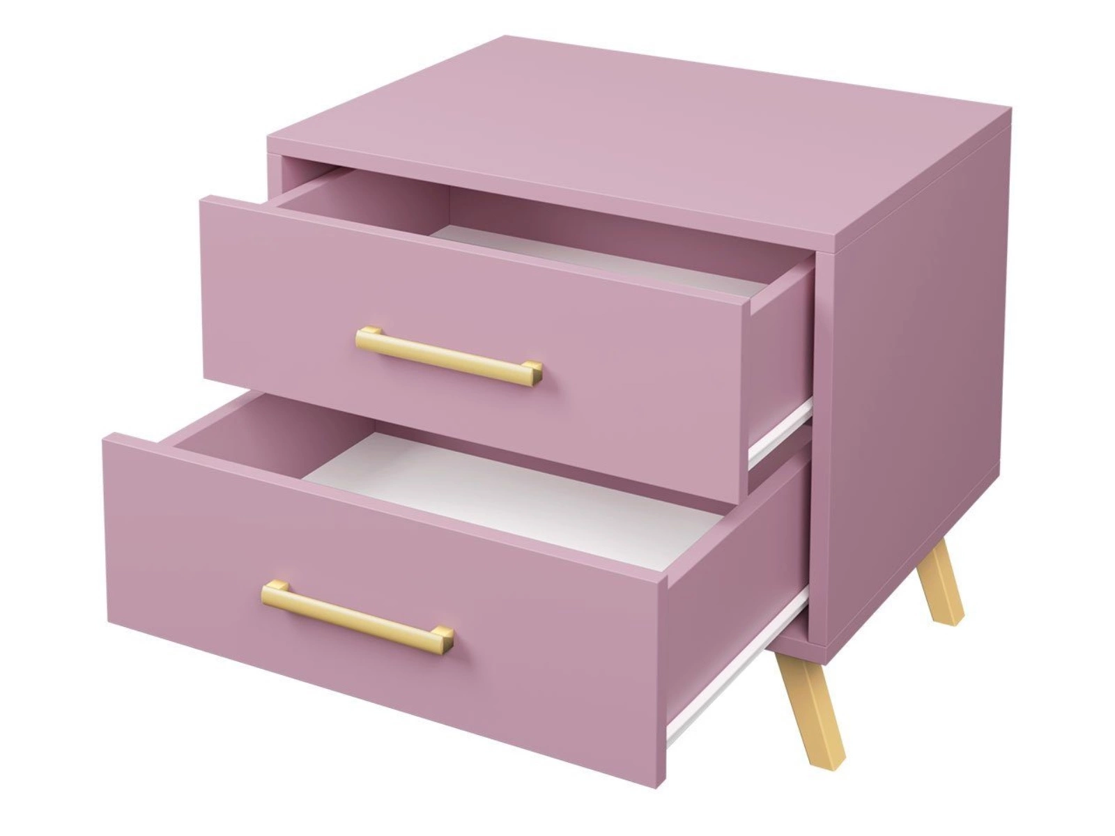 Nachtisch mit 2 Schubladen Gold Griffe ALEX II PFLAUME