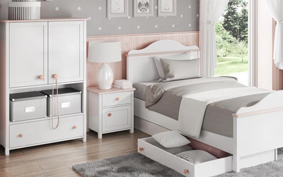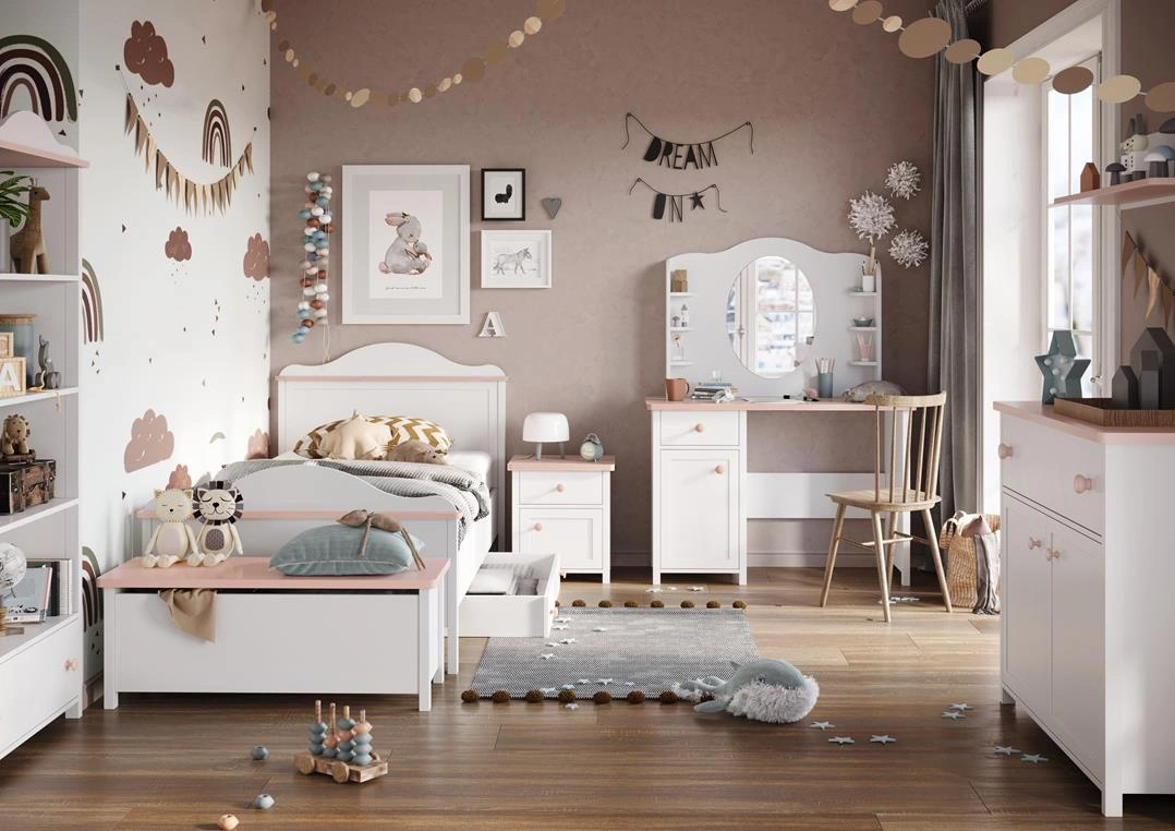 Nachtkommode LARA für Mädchen Kinderzimmer rosa und weiß
