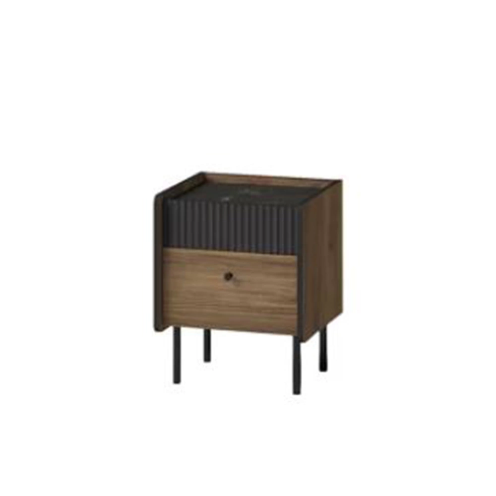 Nachttisch mit Schublade COMO Nussbaum Schwarz Marmor