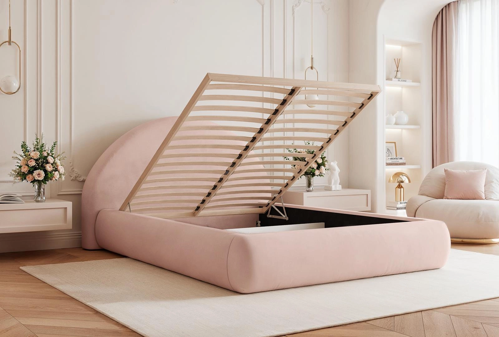 Runde Formen Polsterbett Creme 140x200