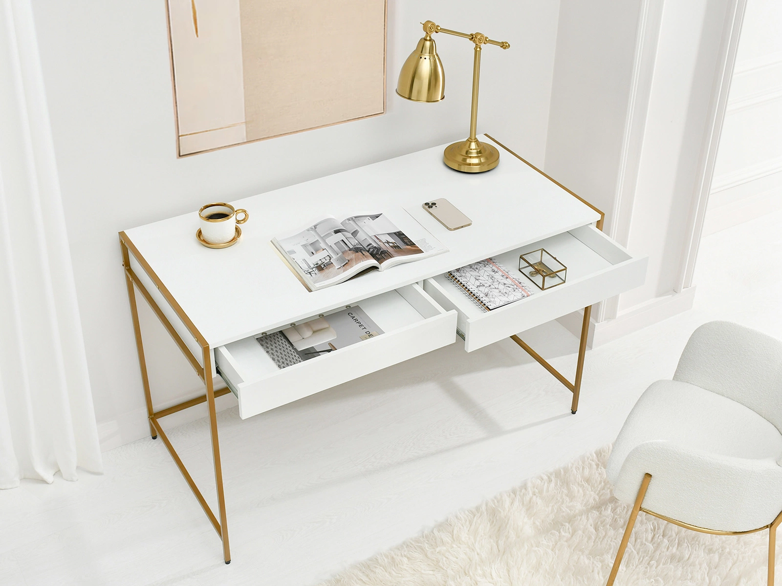 Schreibtisch mit 2 Schubladen Weiß Holz+Gold
