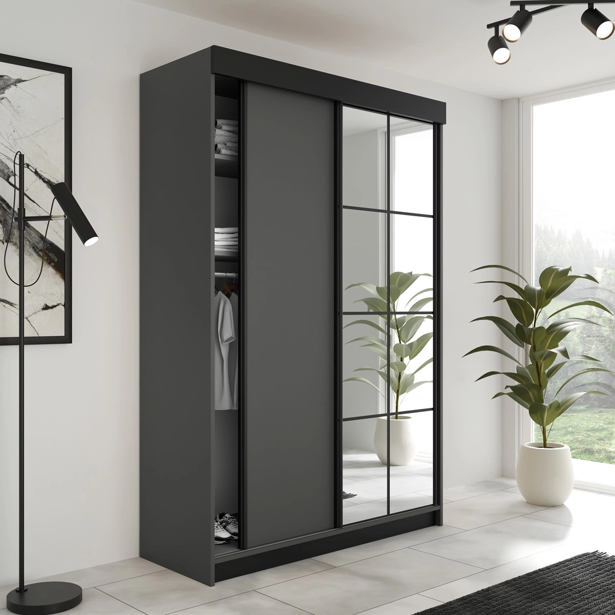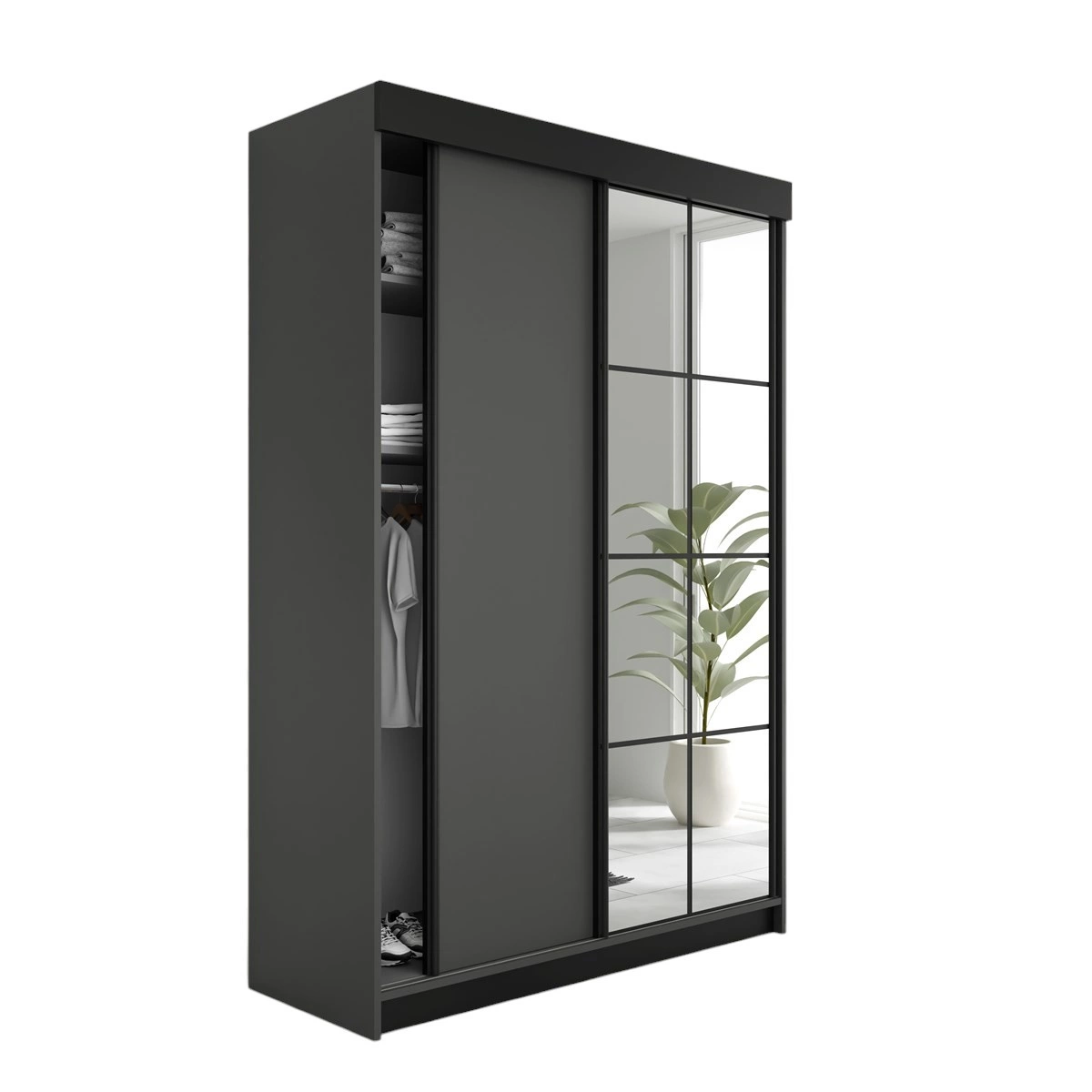 Schwebetürenschrank 2-türig TULIA Graphit + Schwarz