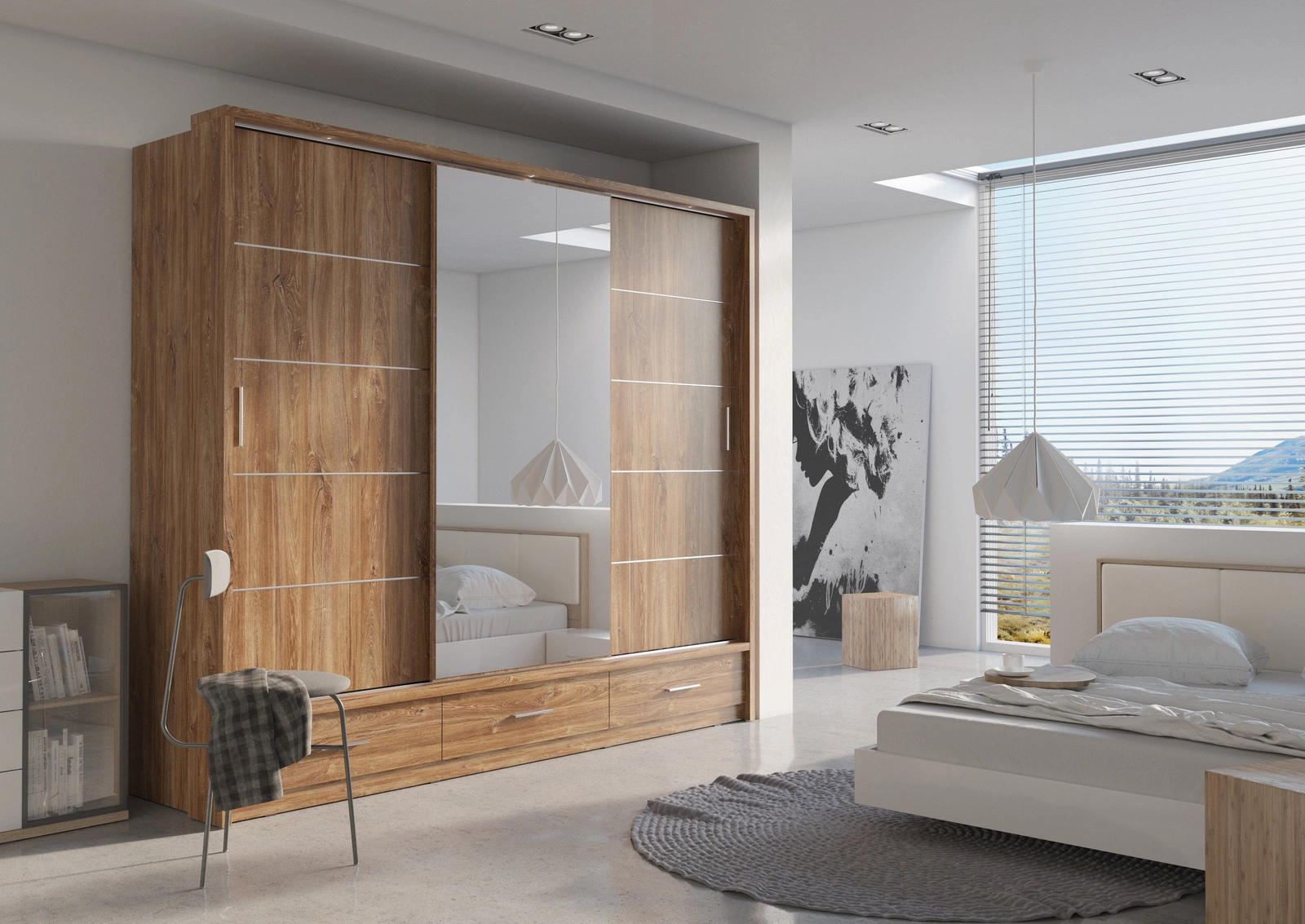 Schwebetürenschrank 3-türig ARTI 01 mit Spiegel Eiche